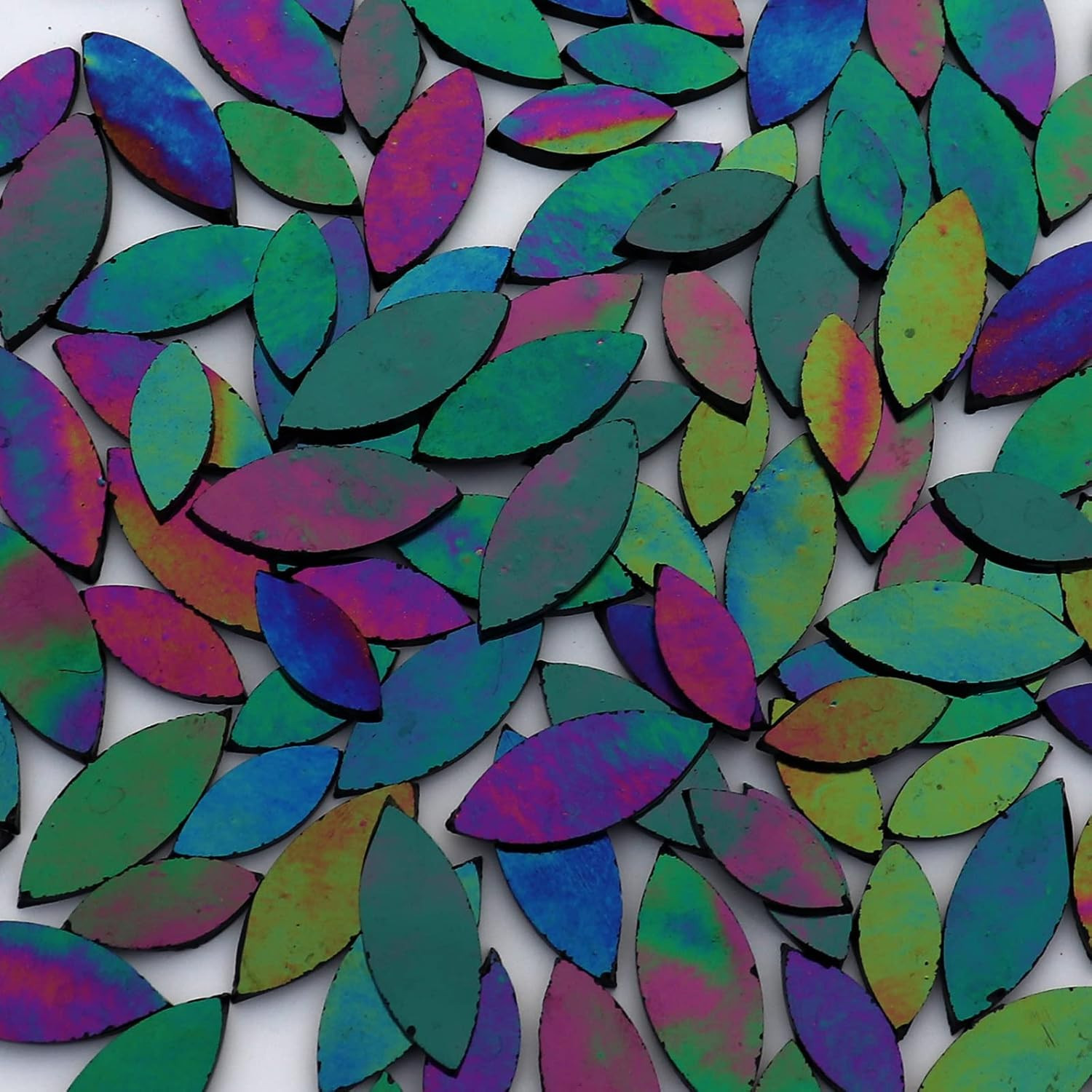 120PCS Iridescent Black Stained Glass Mosaic Tiles Precut Petal Shapes in 2 Si