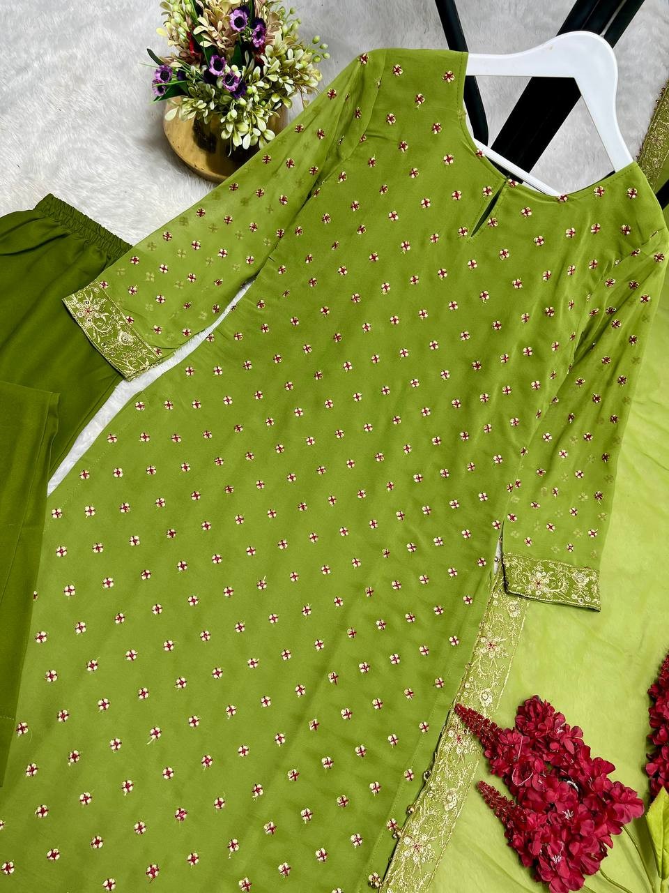 Attractive Look Faux Georgette Lime green Kurti Palazzo With Dupatta For Party