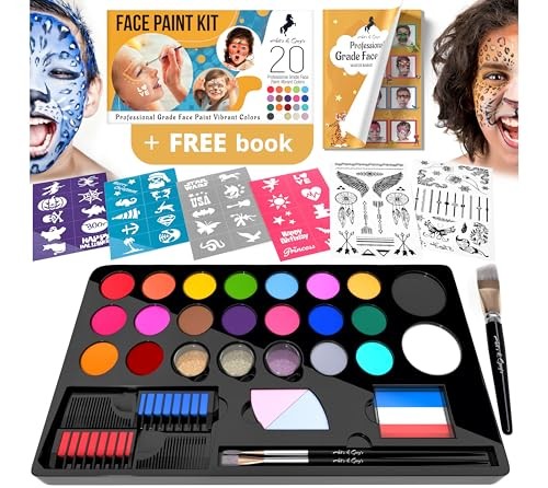 Face Paint Kit for Kids 20 Washable Colors, Guaranteed Stain Large 107 pcs