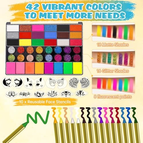Face Painting Kit for Kids - 42 Colors Washable Face Paint Professional Face