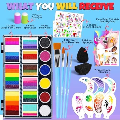 Professional Face Painting Kit for Kids Adults, Large Split Super Large Set A