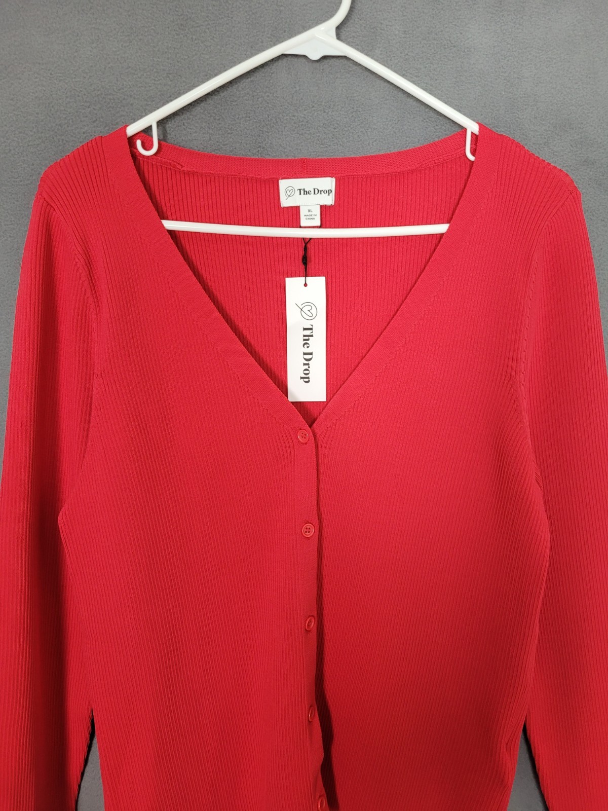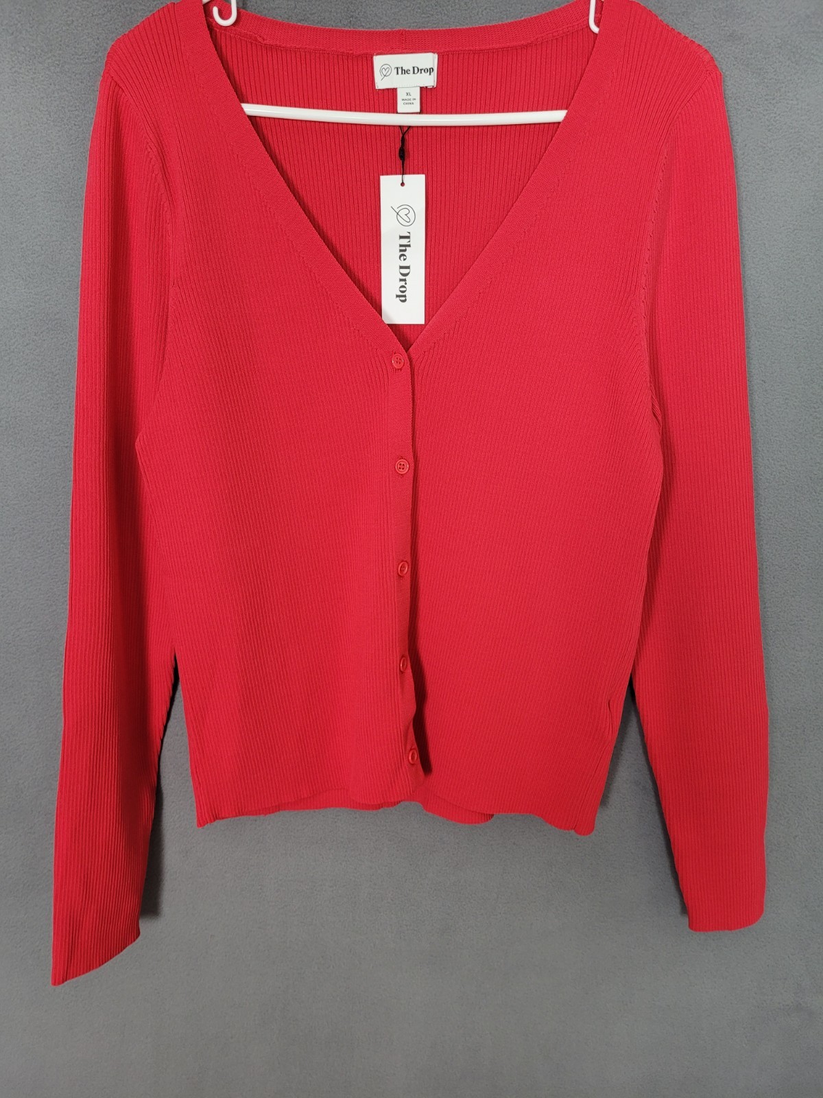 The Drop Women's Anya Fitted Rib Cardigan Sweater Candy Apple Red Size XL