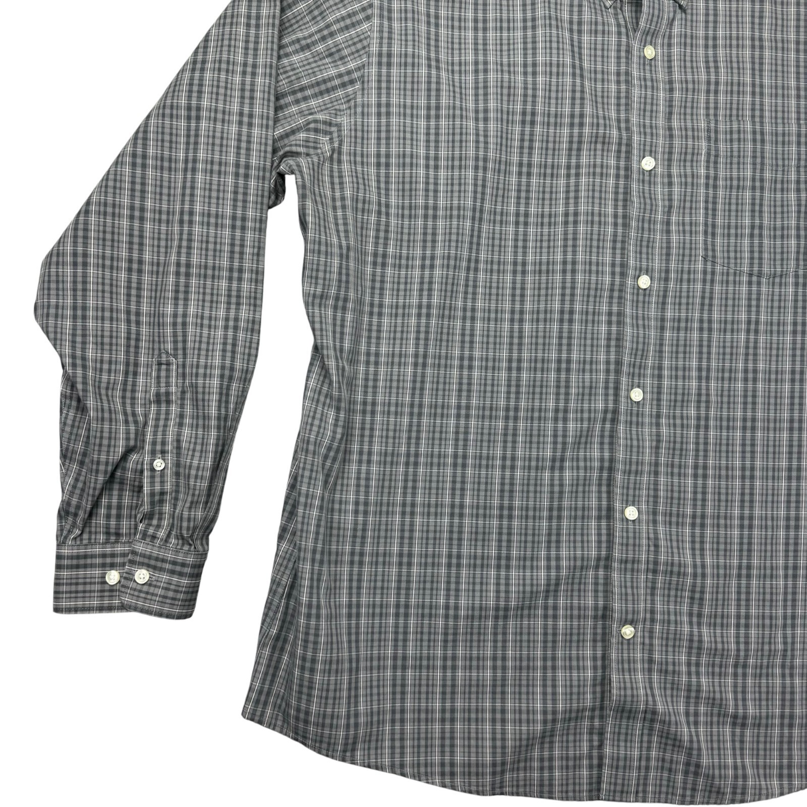 Eddie Bauer Shirt Men's 2XL Gray White Wrinkle Free Classic Fit Plaid Button Up