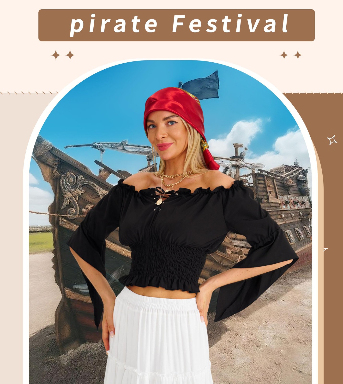 как выглядит Pirate Costume Women Outfit With pirate top women renaissance Corset Headscar... фото