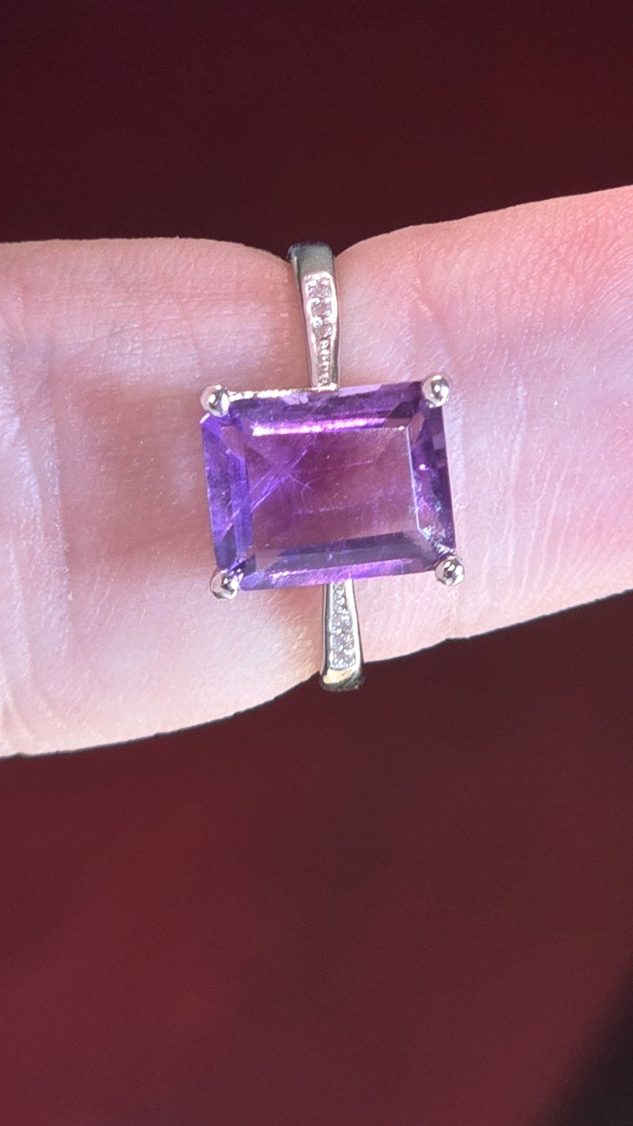 как выглядит Sterling Silver Natural Amethyst Emerald Cut Prong Set Ring Sz 7 фото