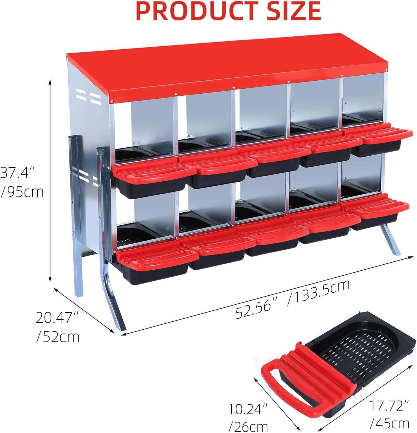 Large Metal Hens Chicken Coop Nesting Box 10 Hole Roll Away Nesting Box with Leg