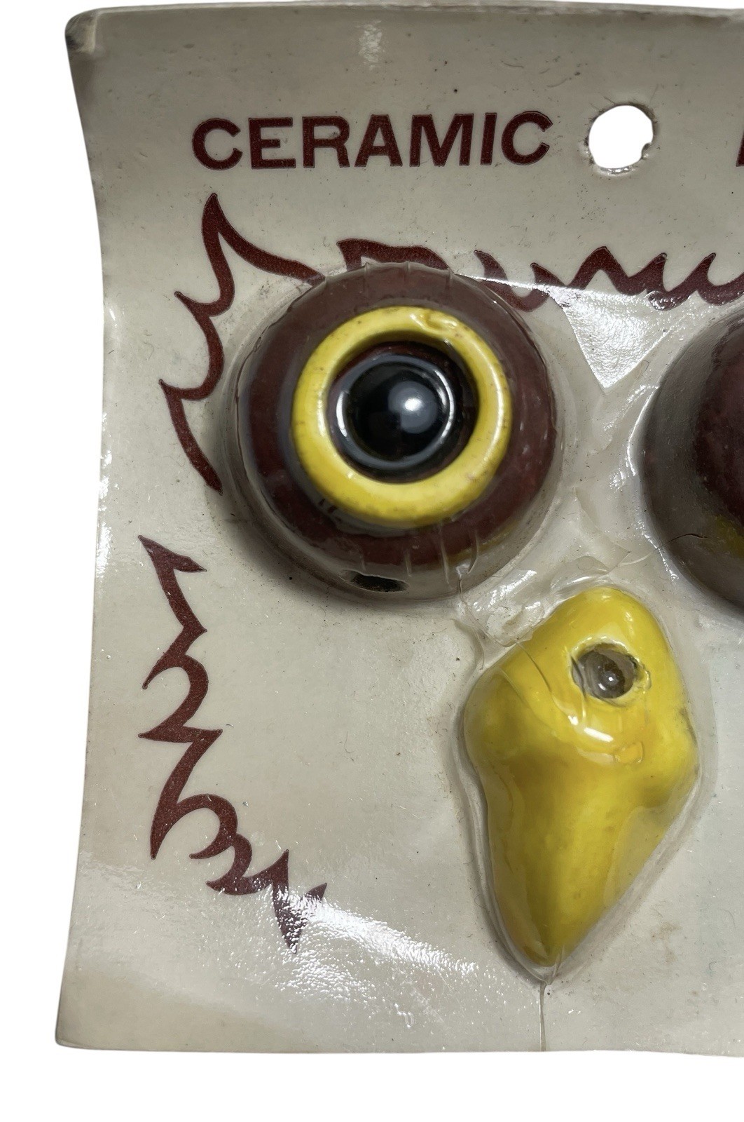 Vintage Ceramic Owl Face Eyes Beak Macrame Craft Bead Yellow Brown Retro 70s New