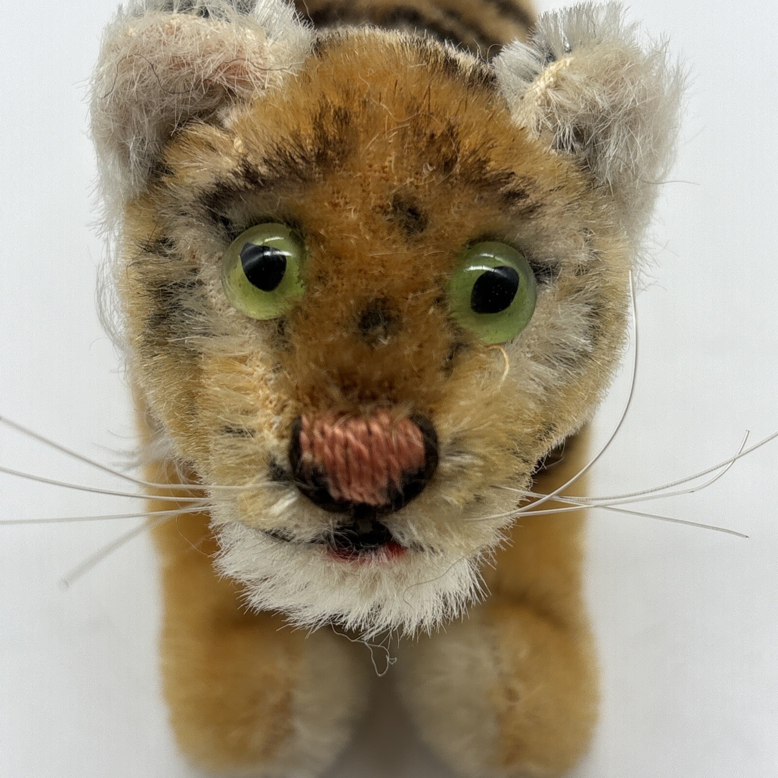 Steiff Animal - Vintage Tiger Cub Glass Eyes Stitched Pink Nose 17cm Circa 1960s