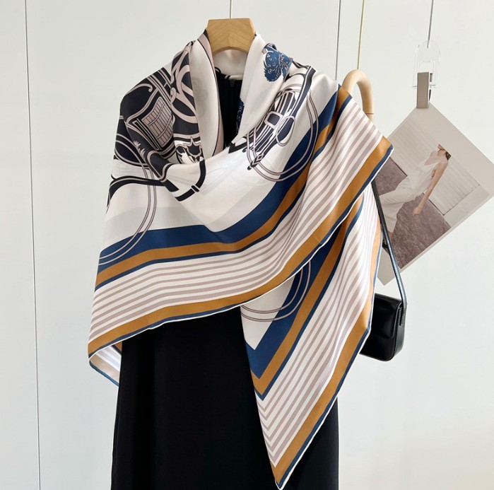 как выглядит 100 Pure Twill Silk Scarf Bandanna Carriage print Square Shawl Large Wrap 53" фото
