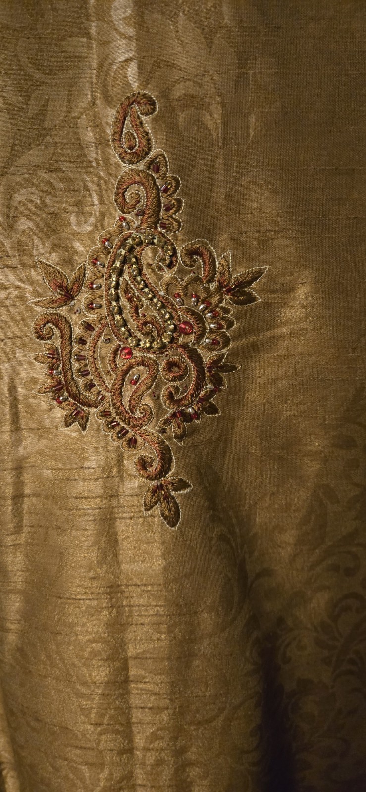 Mens Kurta Only 40 Gold And Cranberry Beaded Embroidered Front And Back