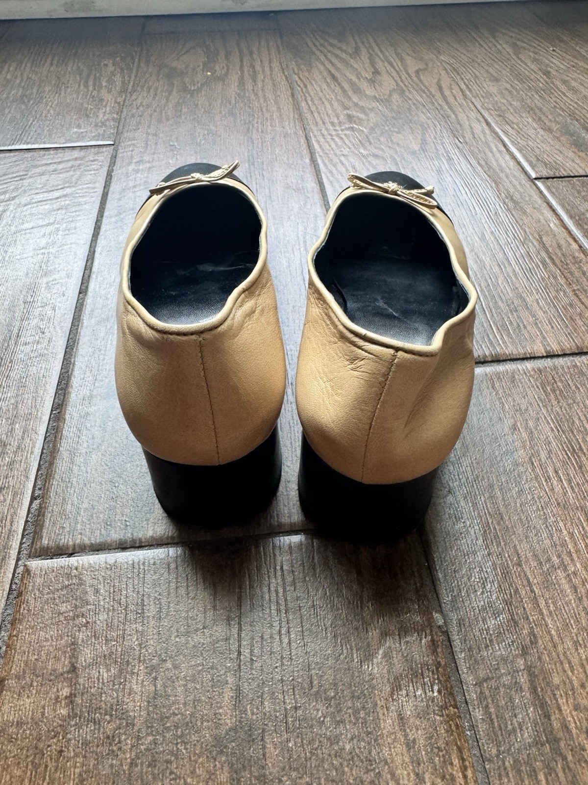 как выглядит AUTHENTIC Tory Burch Bicolor Cap-Toe Ballerina Pumps Size 8 US фото