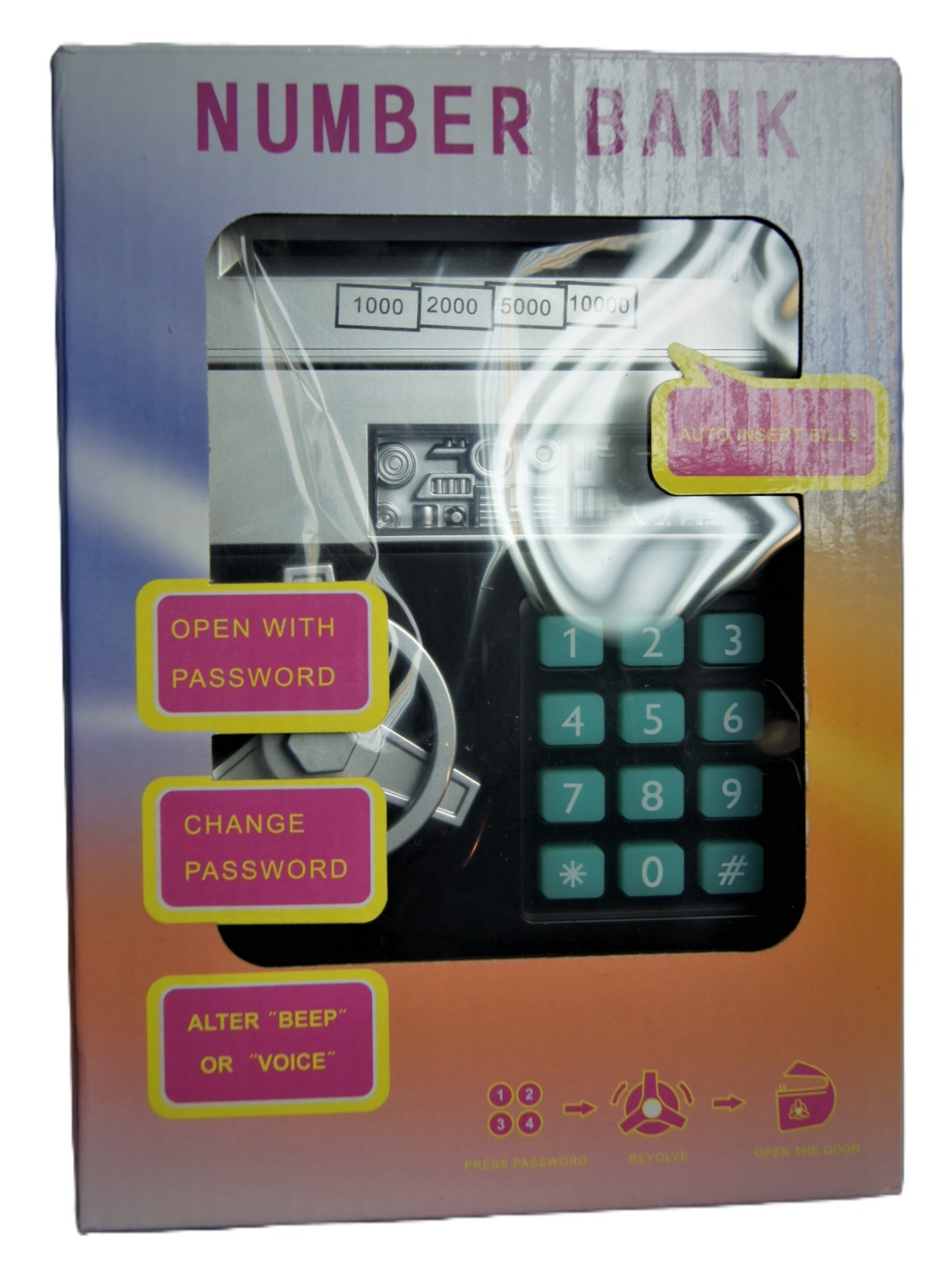 как выглядит Coins Bills "Number Bank" Password Lock, ATM/Safe Style Piggy Bank Blk/Gray фото