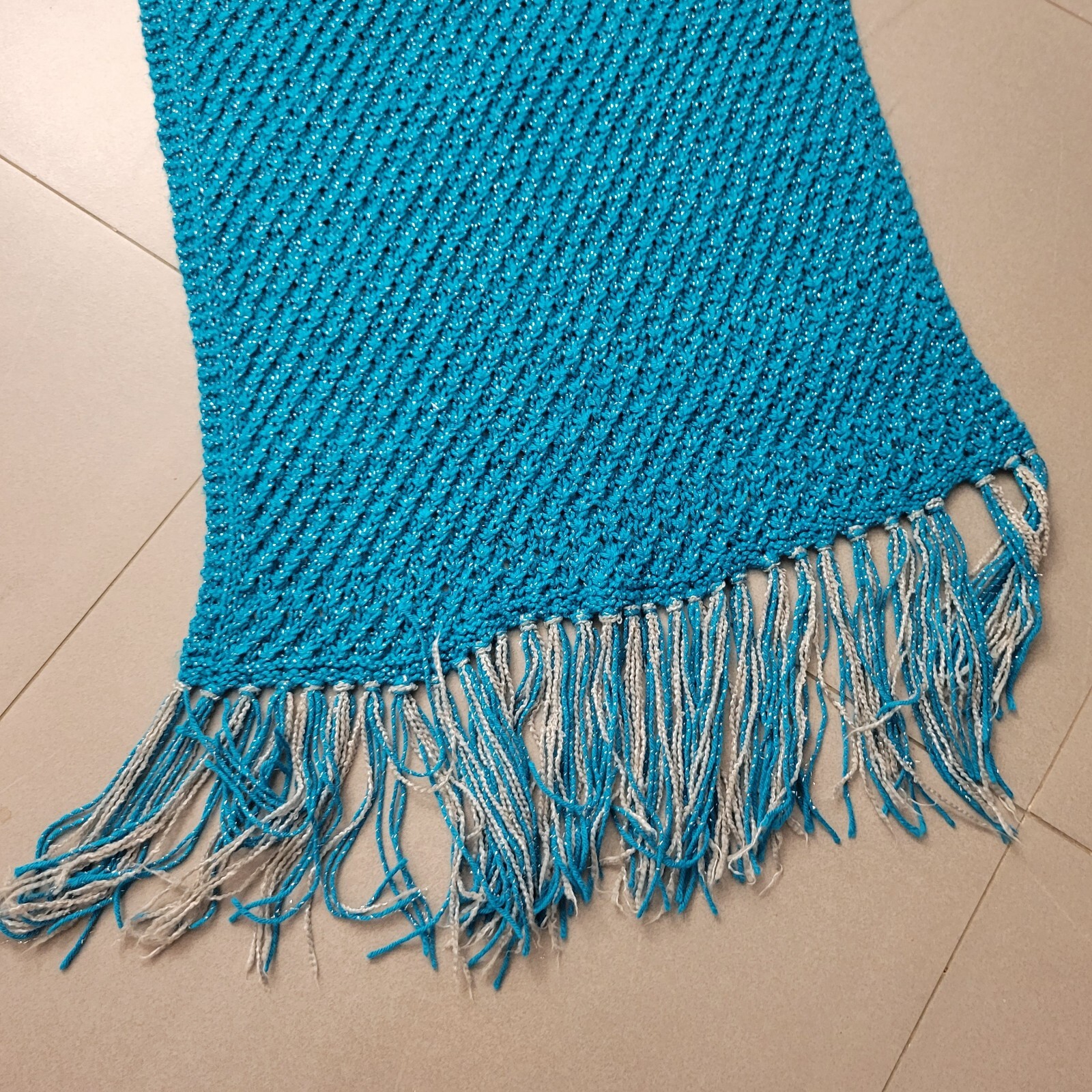 как выглядит Shawl Teal Blue/Silver Metalic Knite Oversize Tassel Wrap Scarf Xmas Handcrafted фото