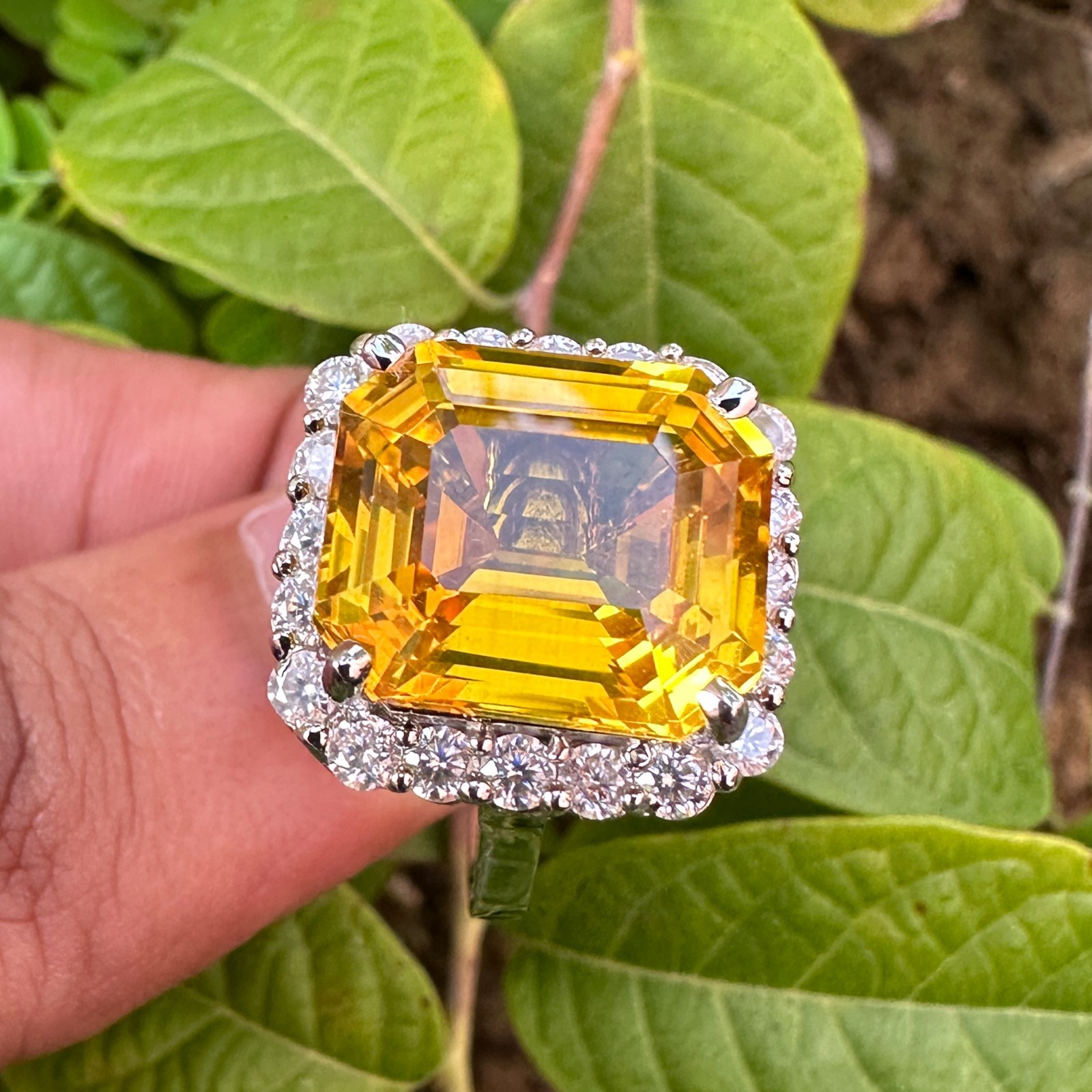 Natural Yellow Sapphire Ring 925 Sterling Silver Certified Gems Jewelry For Gift