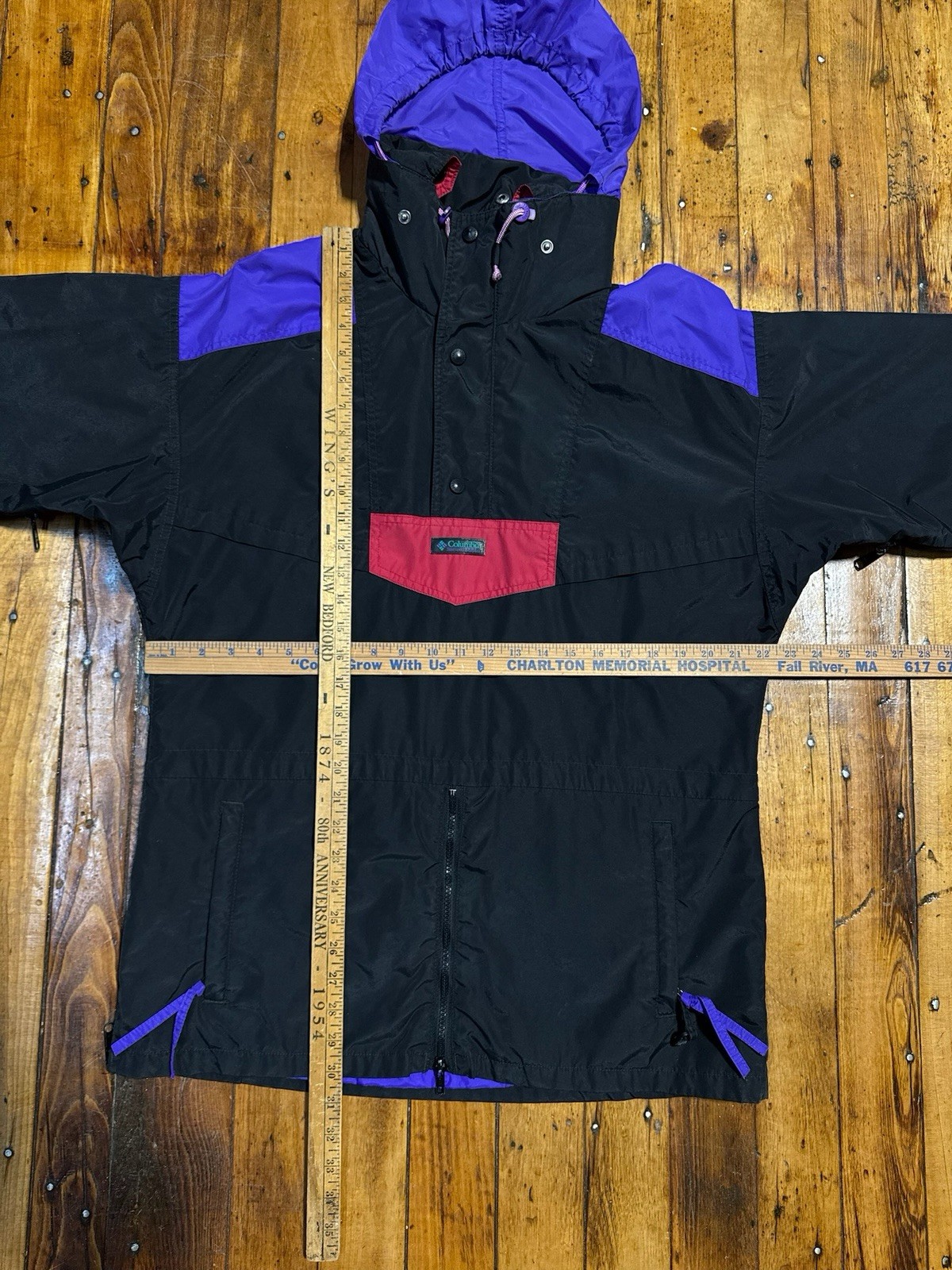 как выглядит Vintage Columbia Windbreaker Jacket Size L Black Colorblock Neon фото