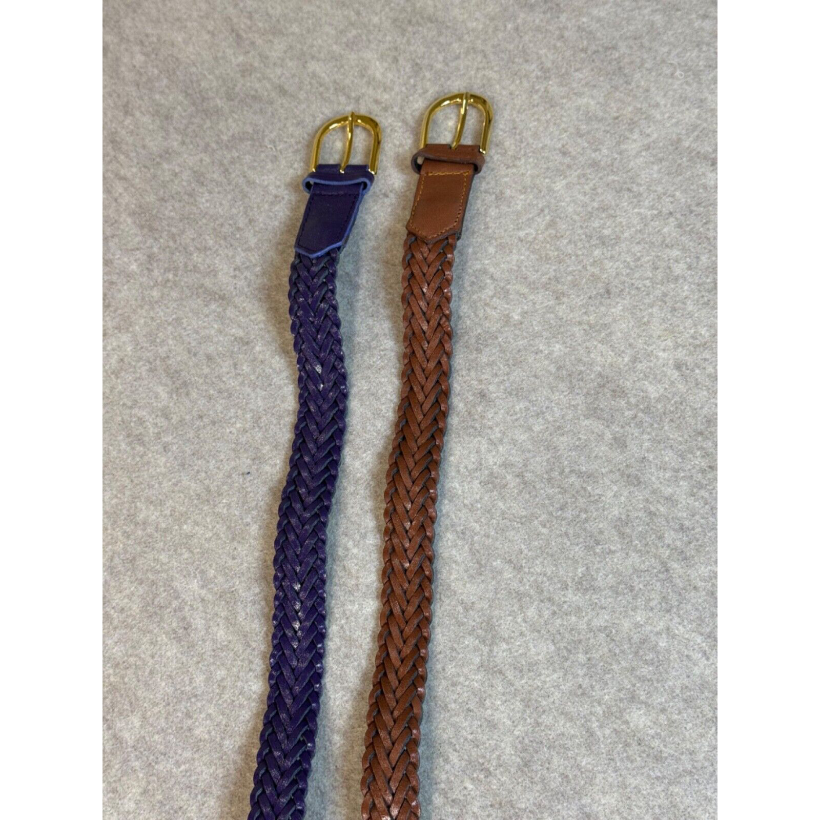 как выглядит 2 Woven Braided Leather Belts Purple Brown Vtg 42" 43" Long Preppy Gold Tone фото