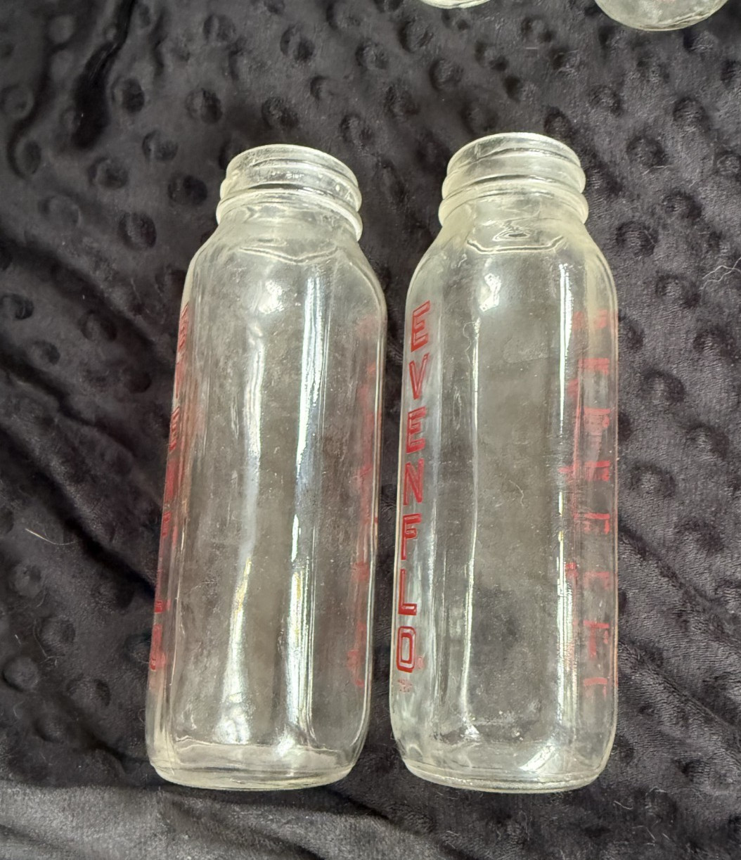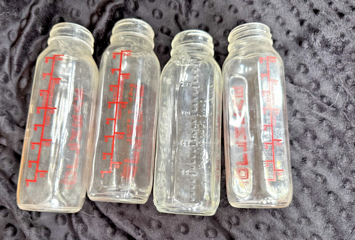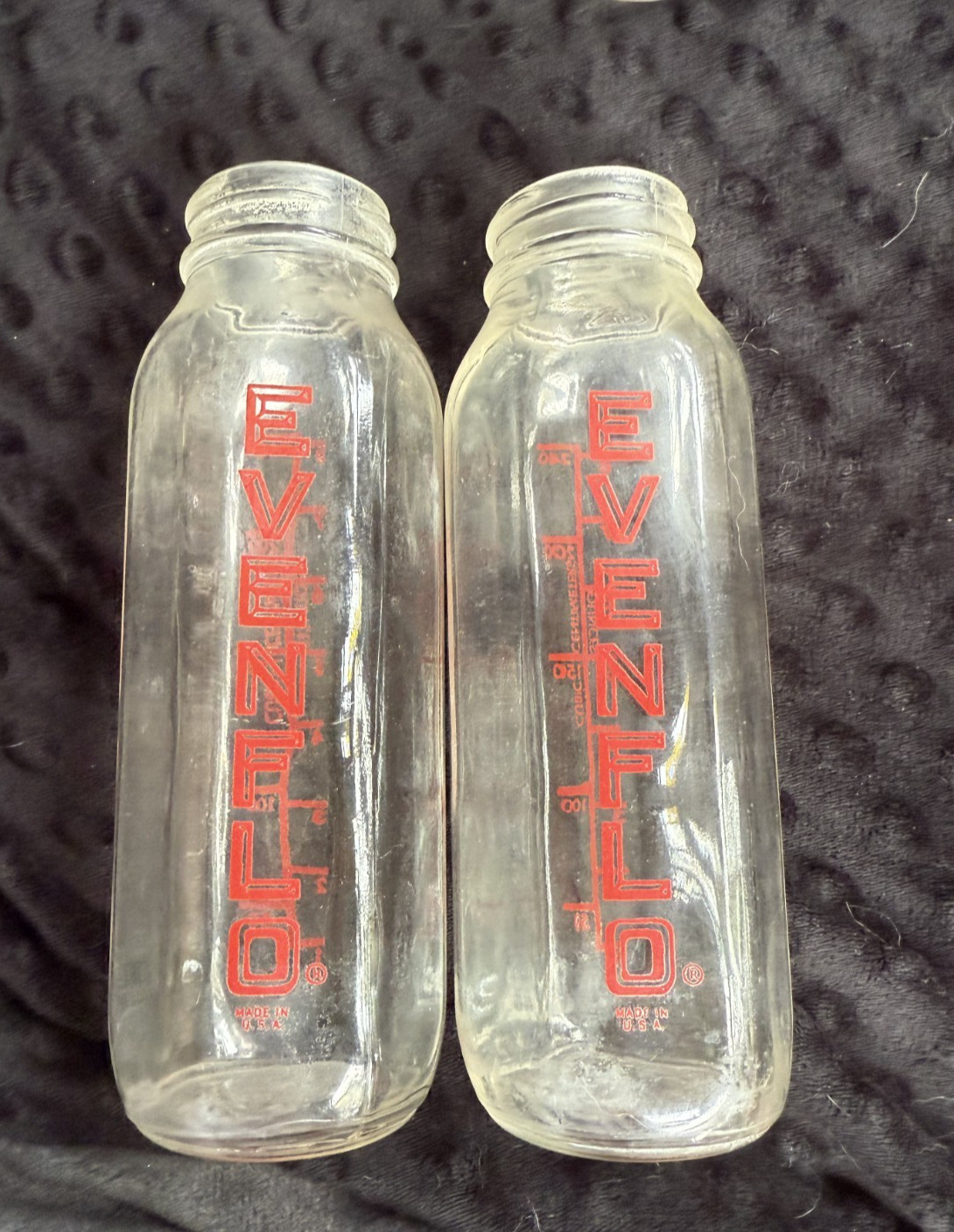 Four Vintage Red lettering Evenflo 8 oz Baby Nurser / Bottles