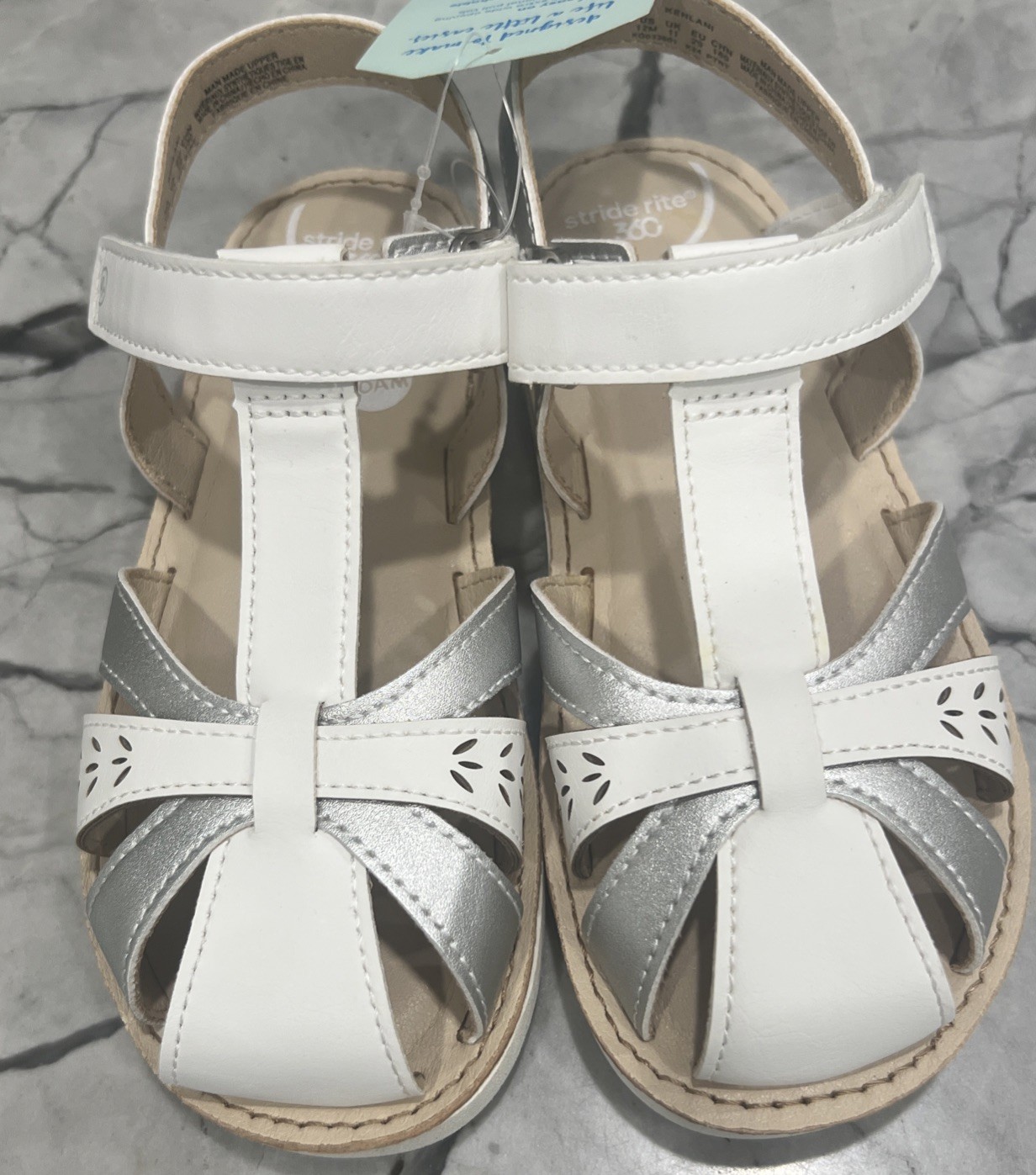 как выглядит Stride Rite 360 Size 12M Kehlani White Silver Hook Loop Sandals NEW фото
