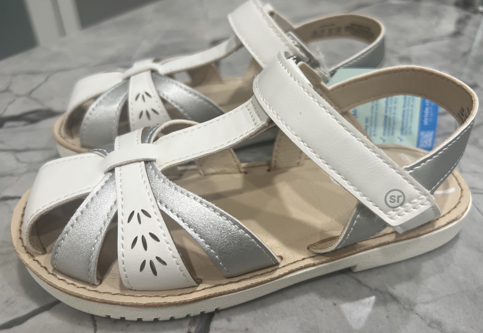 Stride Rite 360 Size 12M Kehlani White Silver Hook Loop Sandals NEW