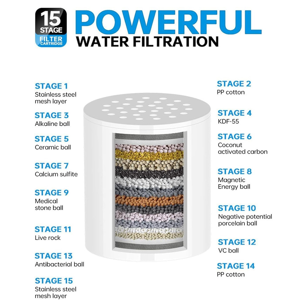 15 Stage Shower Head Filter Purifier Extra Filter Cartridge for Hard Water