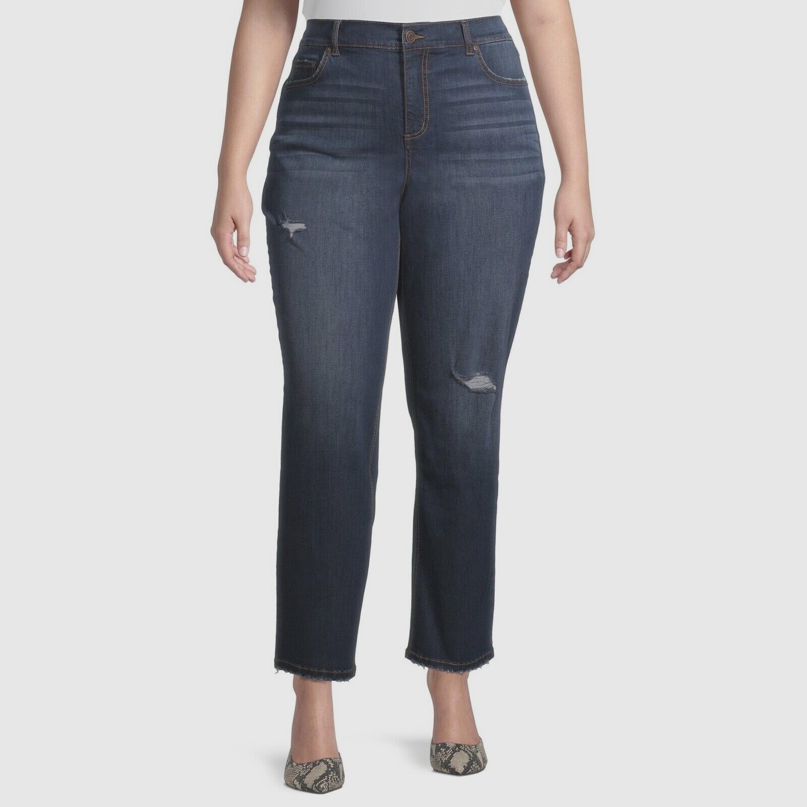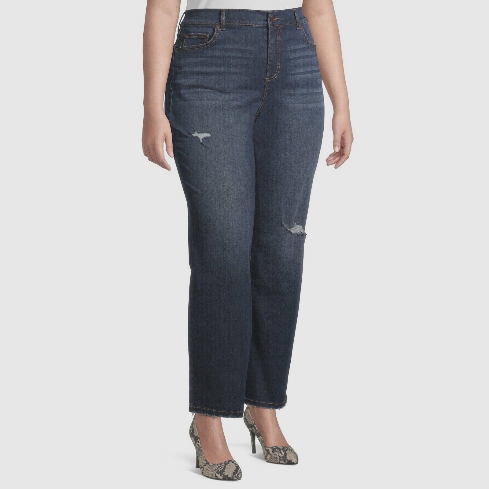 как выглядит Terra Sky Womens Plus Size Core Denim Straight Jeans, Mid Wash, 20 W фото