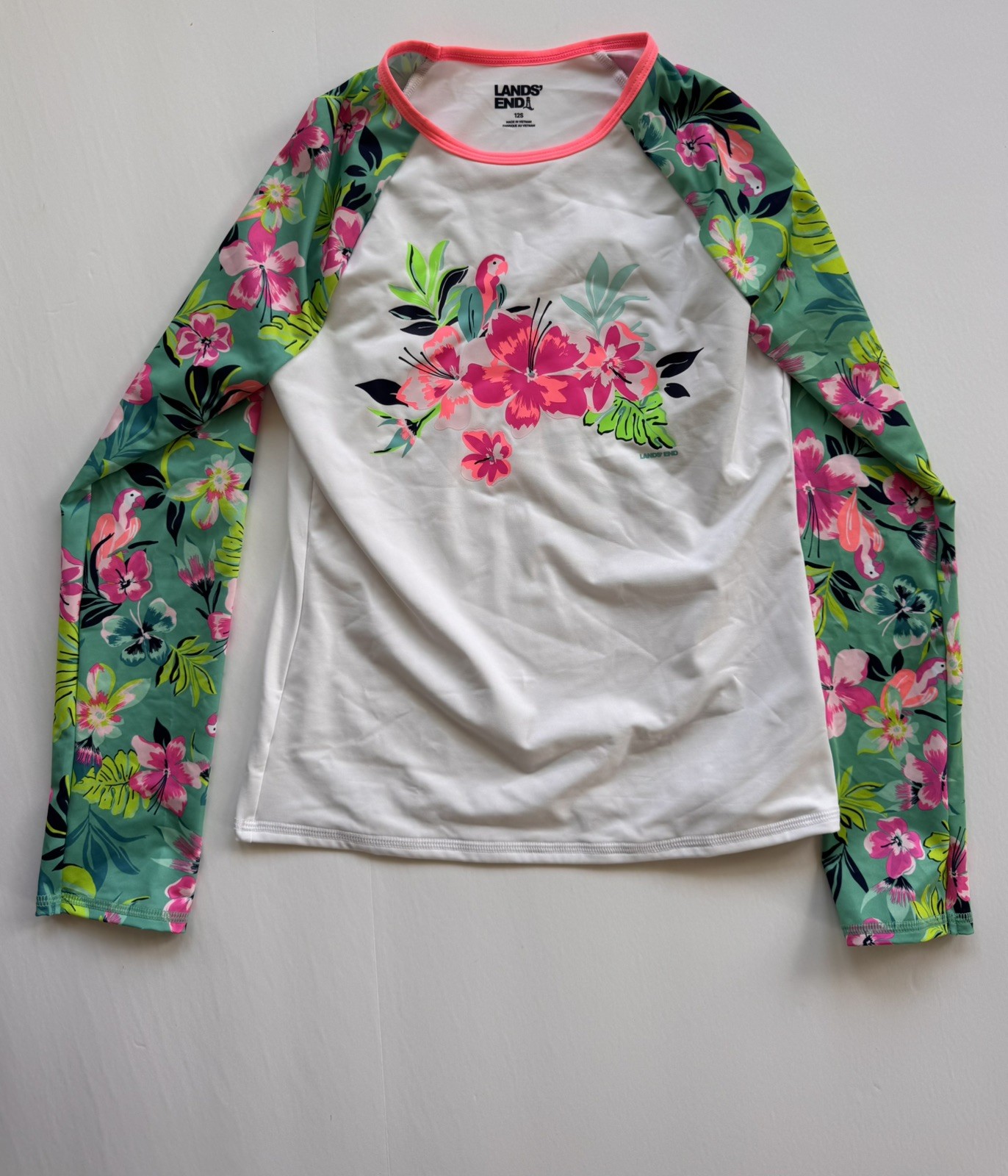 Lands' End Swimsuit Bathing Suit Rash Guard Girls Beach Tropical 2 Piece 12S