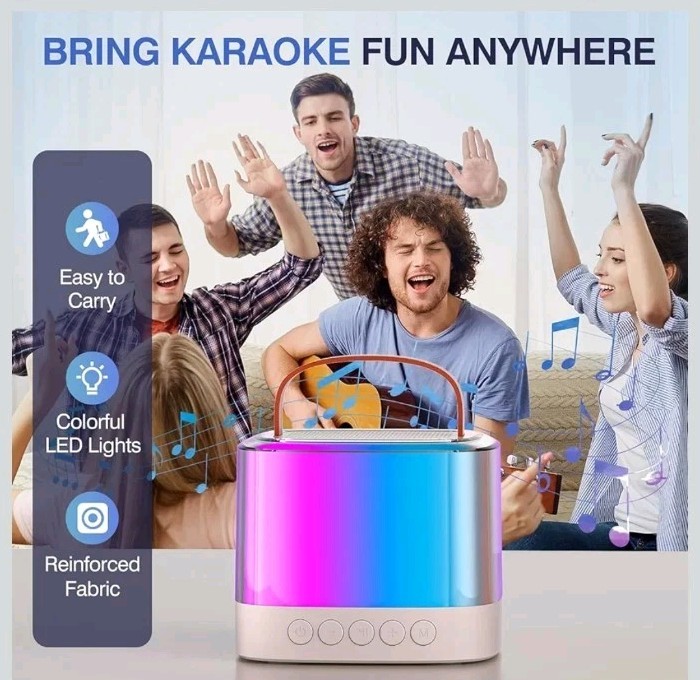 как выглядит Mini Karaoke Machine for Kids with 2 Wireless Microphones, Portable Bluetooth... фото