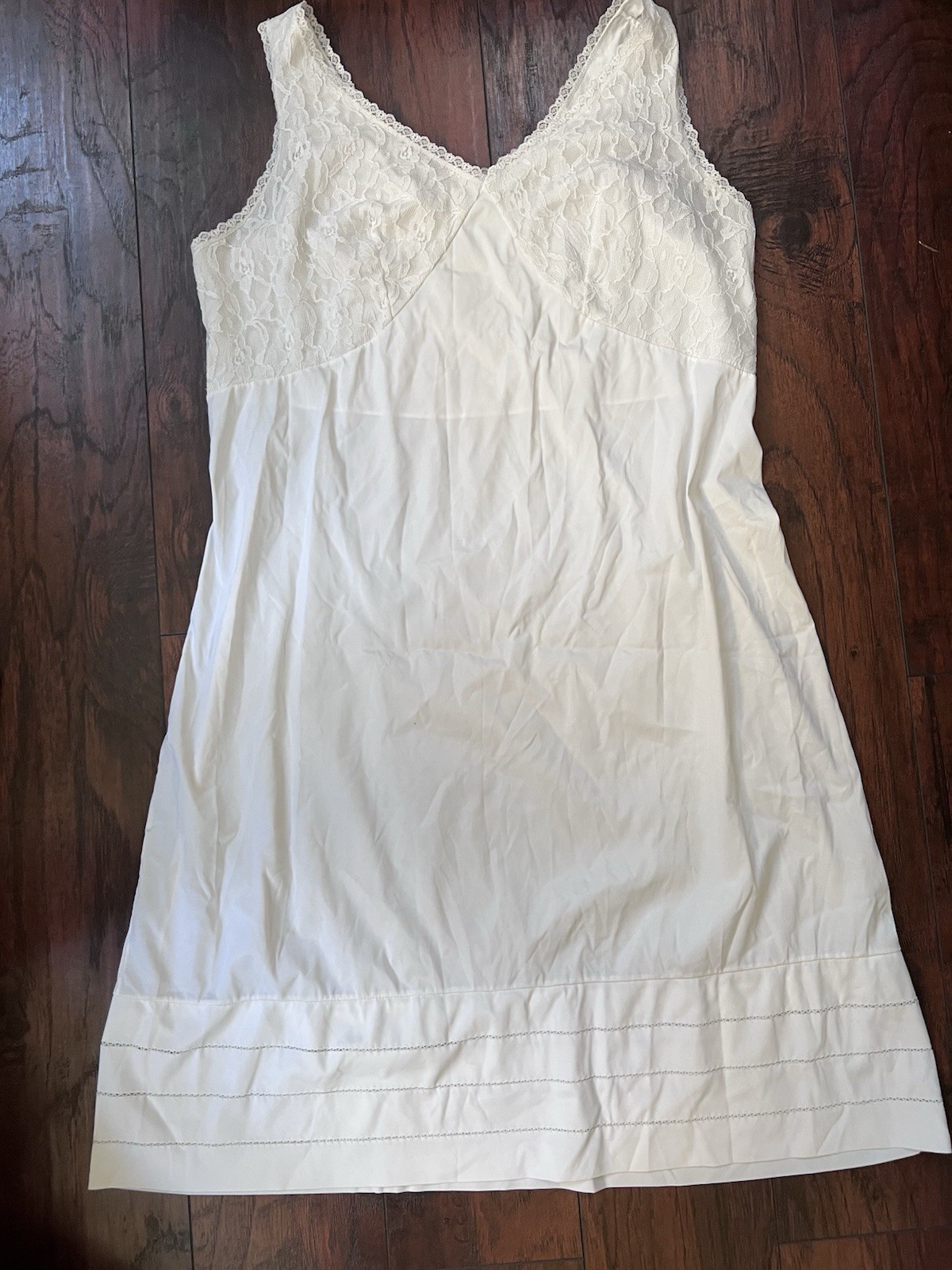 как выглядит Vintage Velrose White Nylon Full Slip Silky Nightgown Size 44 Made In USA фото