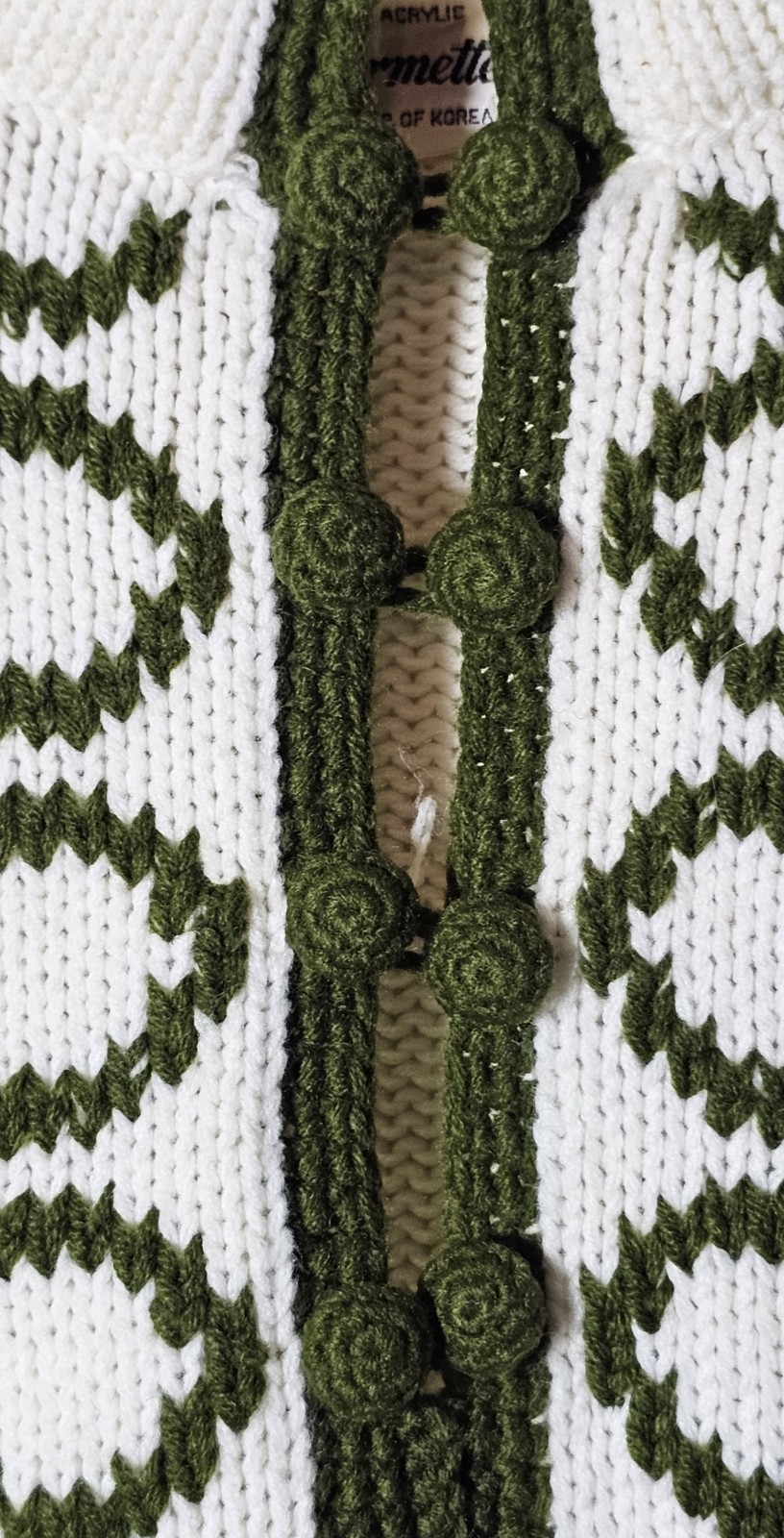 Vtg 1960s Charmette Sweater Size M White Olive Tunic Knit Button Placket Hippie