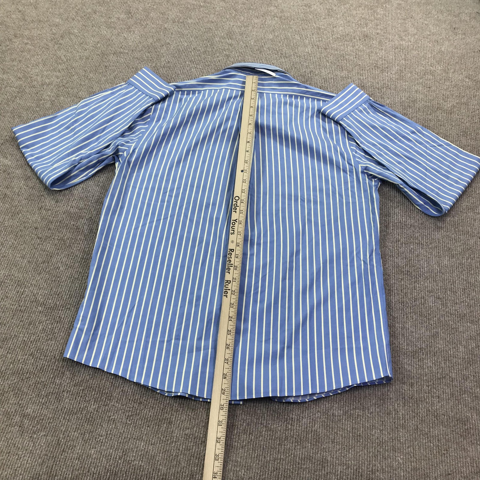 как выглядит Brooks Brothers Dress Shirt Mens 15.5-36 Blue Stripe Non-Iron Stretch Supima фото