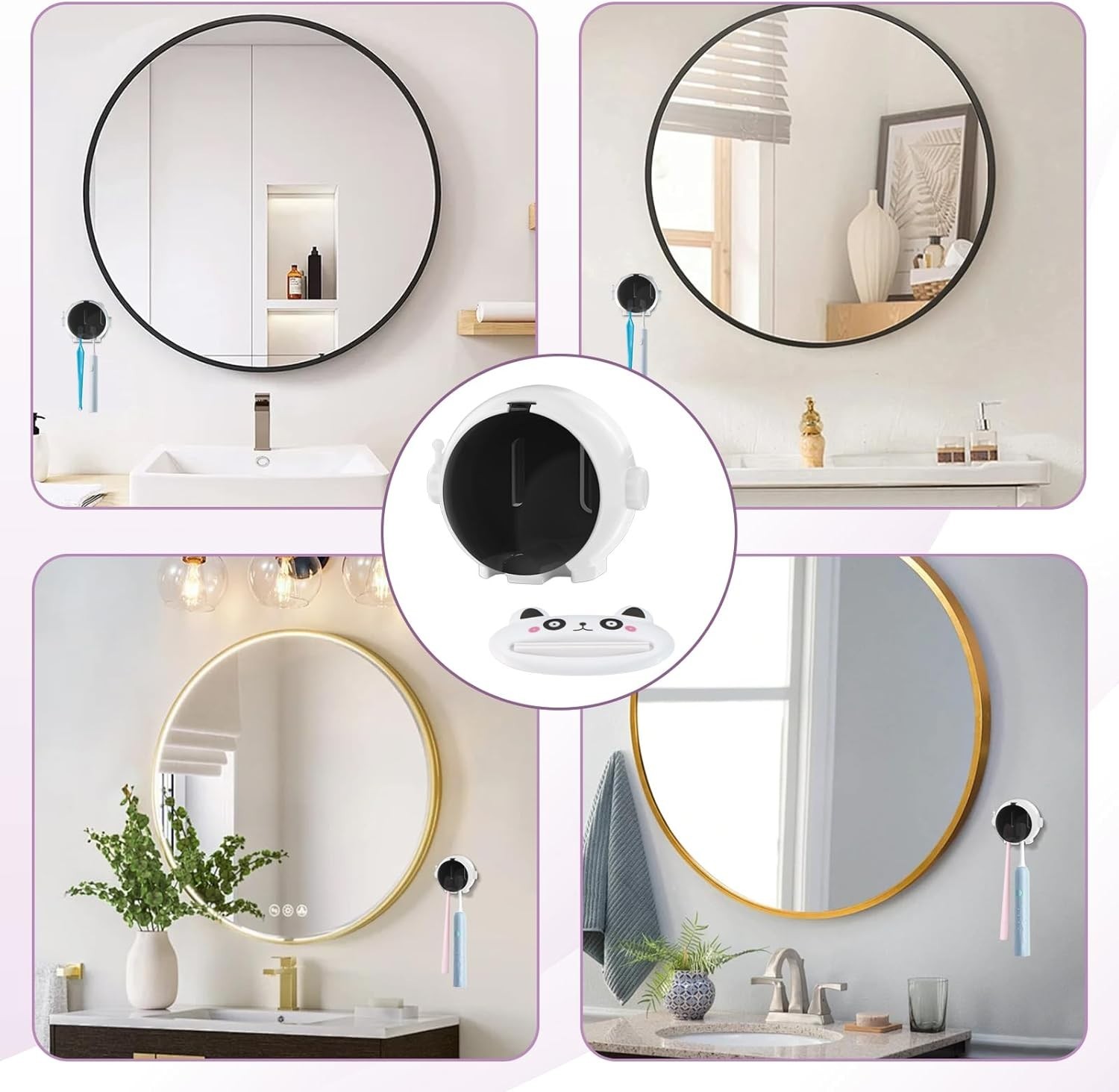 как выглядит Bathroom Toothbrush Holder Wall Mount with Lid Cartoon Toothpaste Squeezer фото