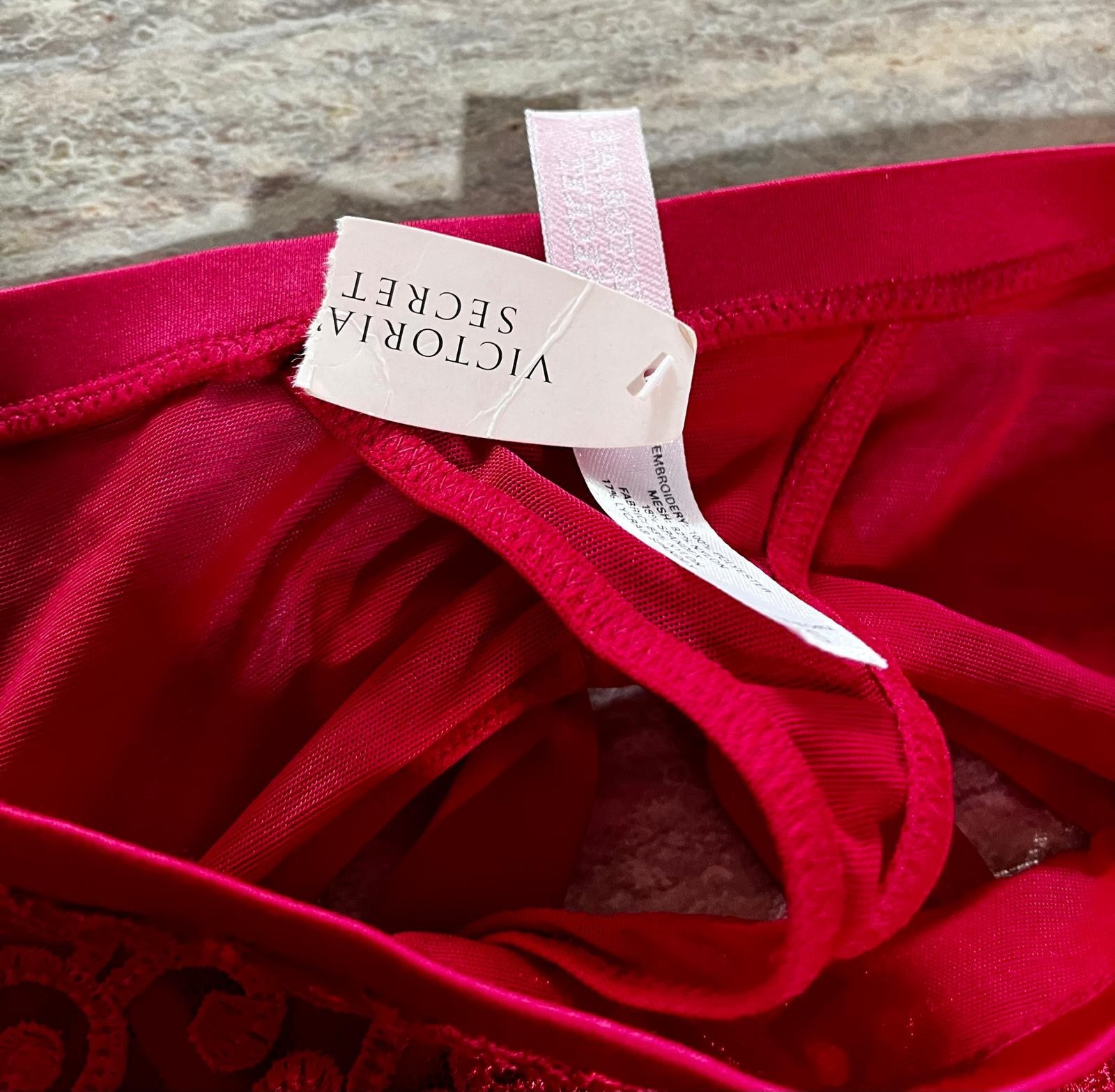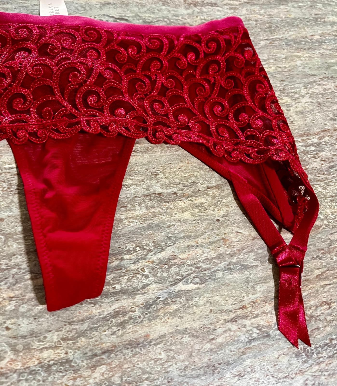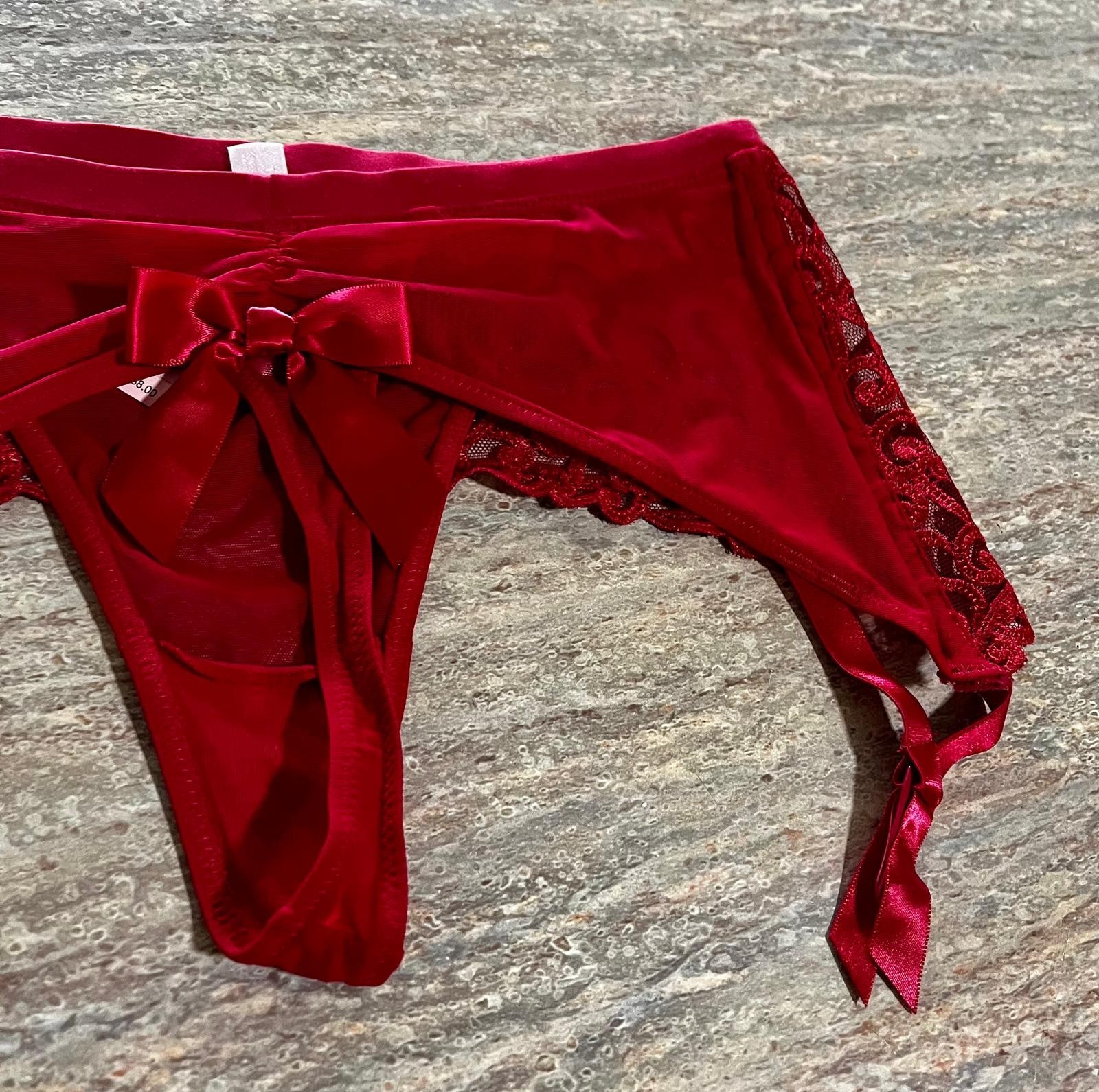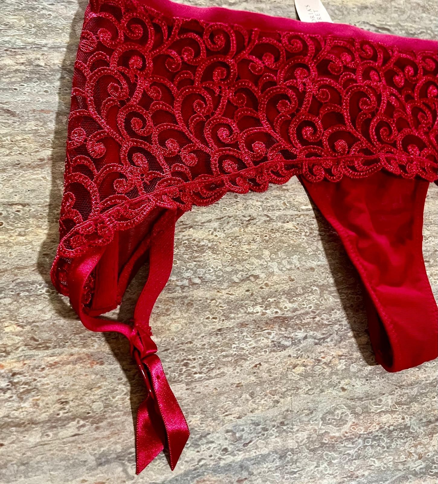 NWT VICTORIA'S SECRET. Red Thong With Laced Garter With Bow On Back Side
