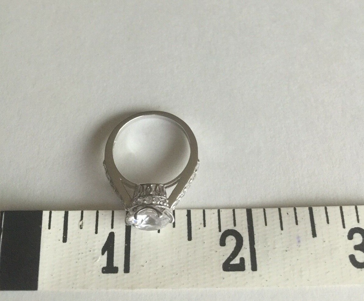 Elegant Sterling Silver Cubic Zirconia Solitaire RING With Accents S: 6