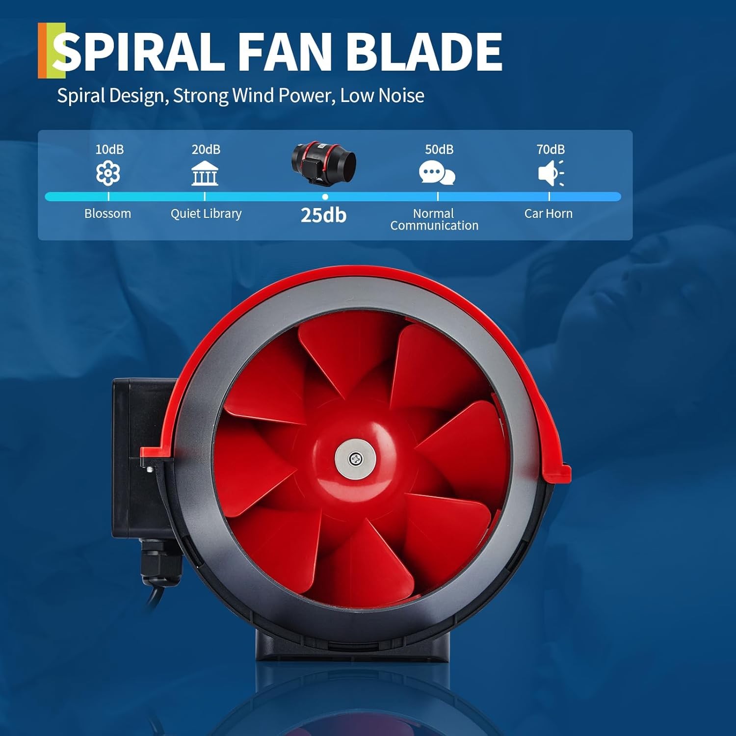 6 Inline Duct Fan Variable Speed Controller HVAC Exhaust Blower Kit Ultra-Quiet