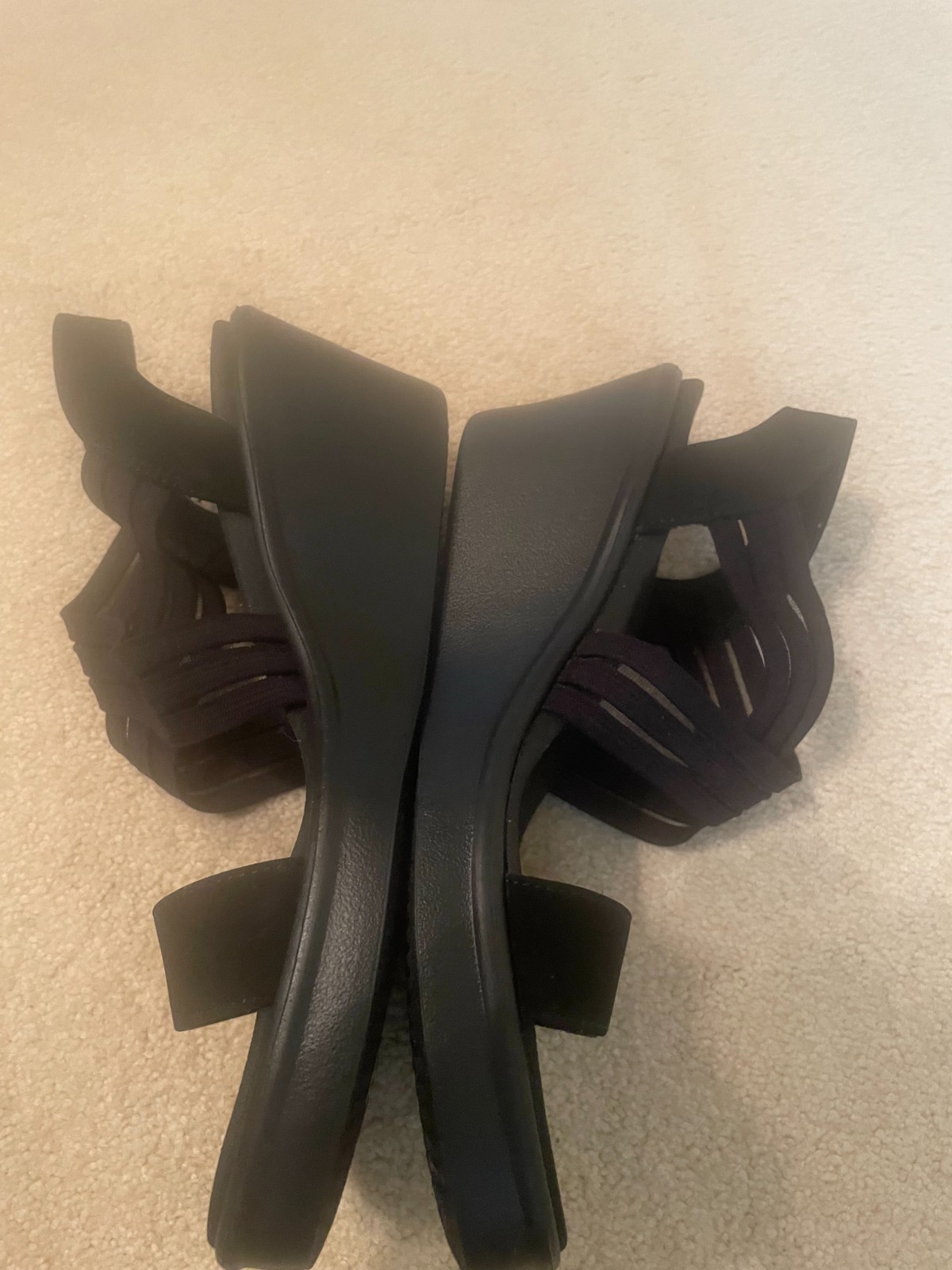 как выглядит CALI Skechers Luxe Foam Black Stretch Strappy Wedge Sandals Size 8 New w/o Box фото