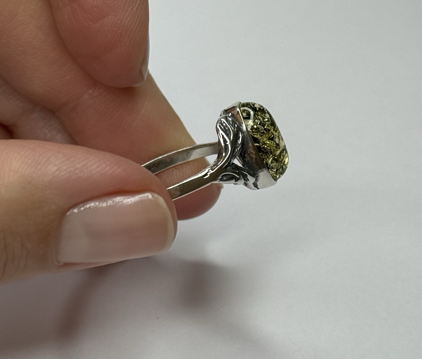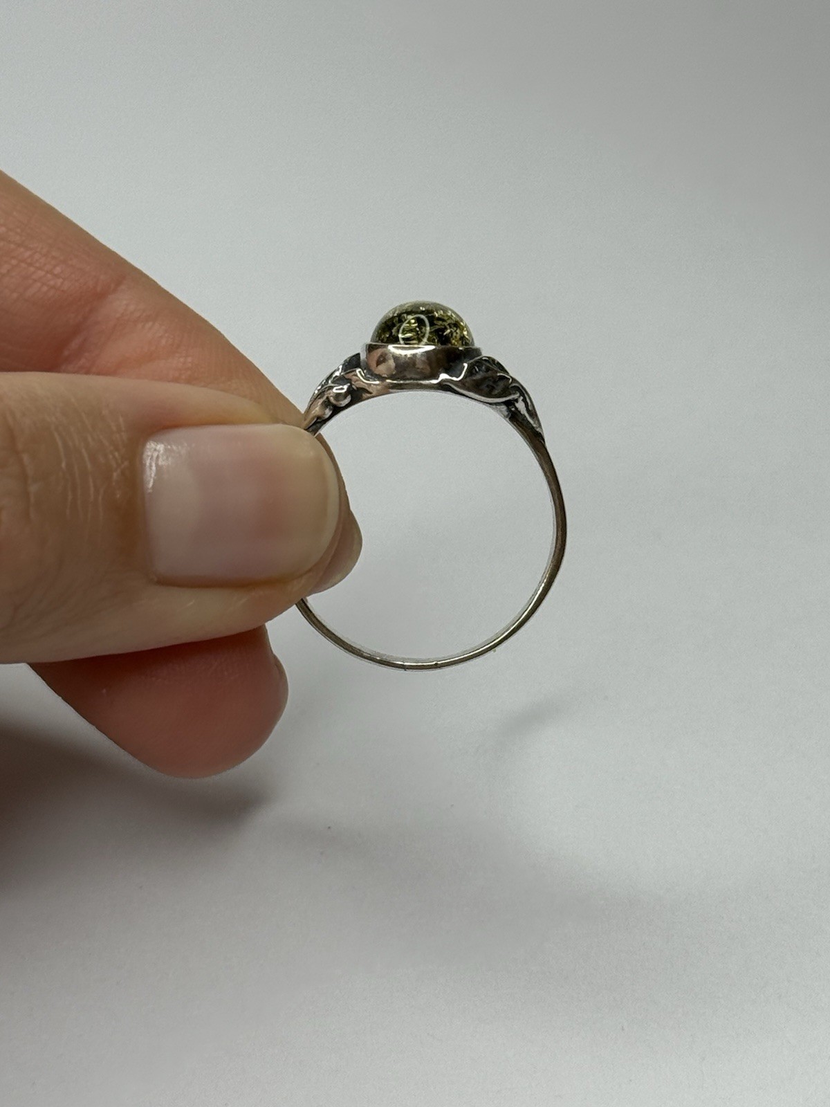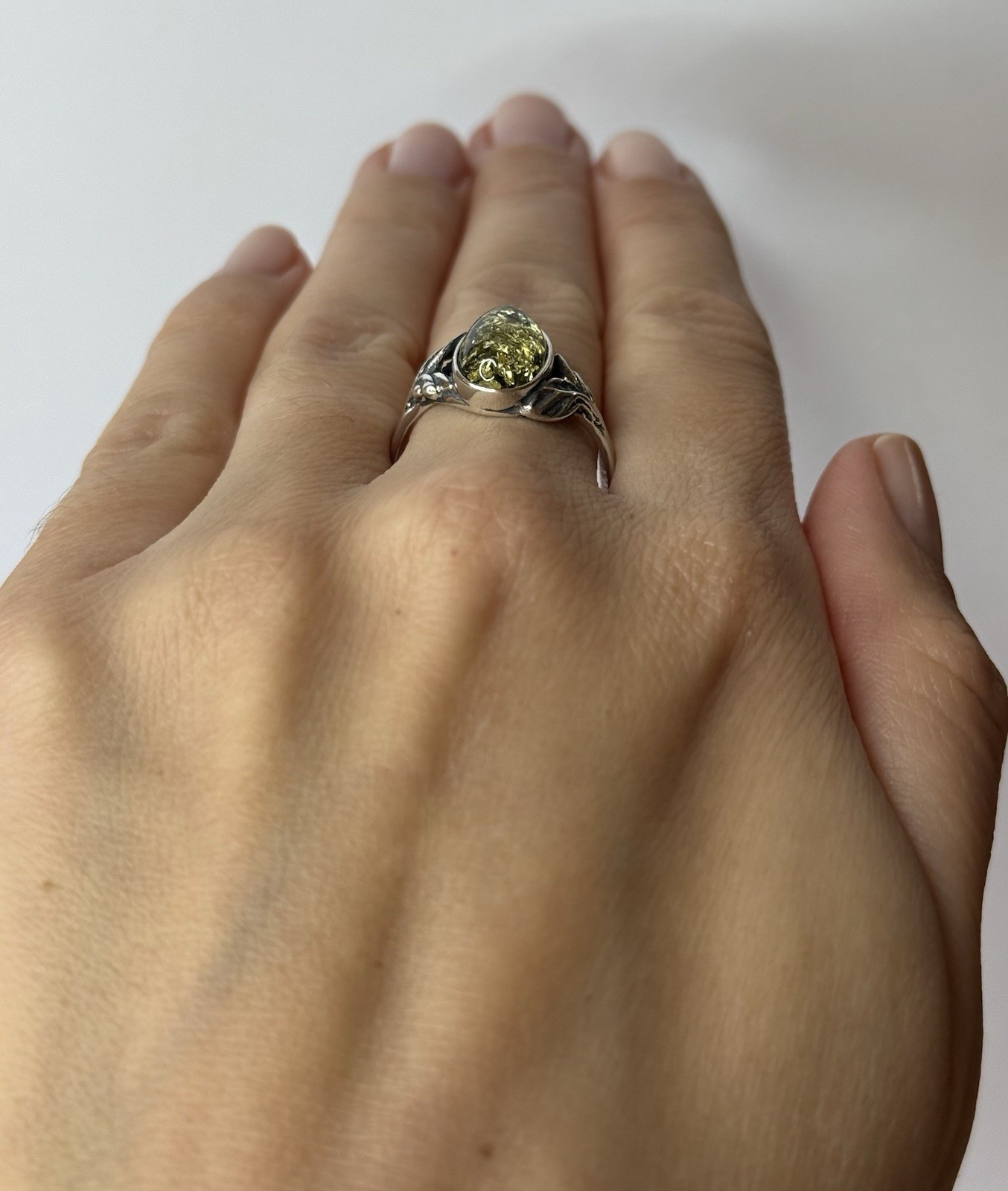как выглядит Genuine Baltic Amber Stone Ring with Sterling Silver.GREENISH Amber Stone Ring. фото