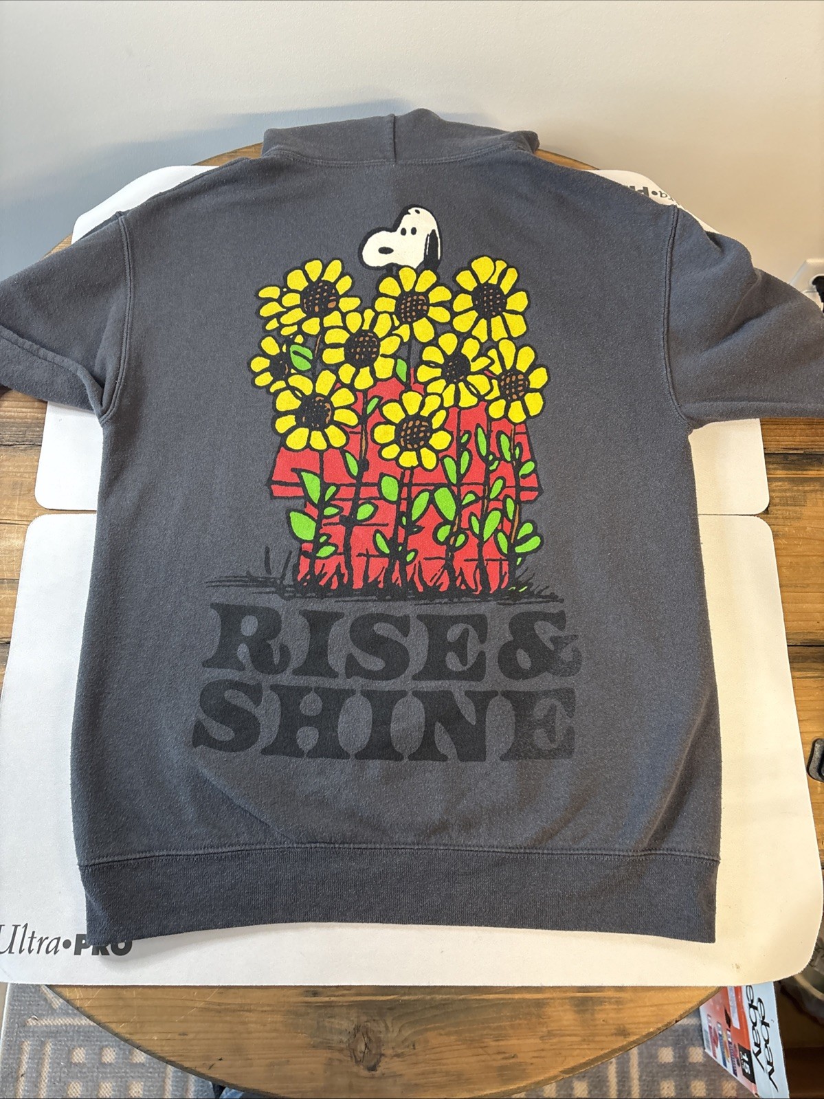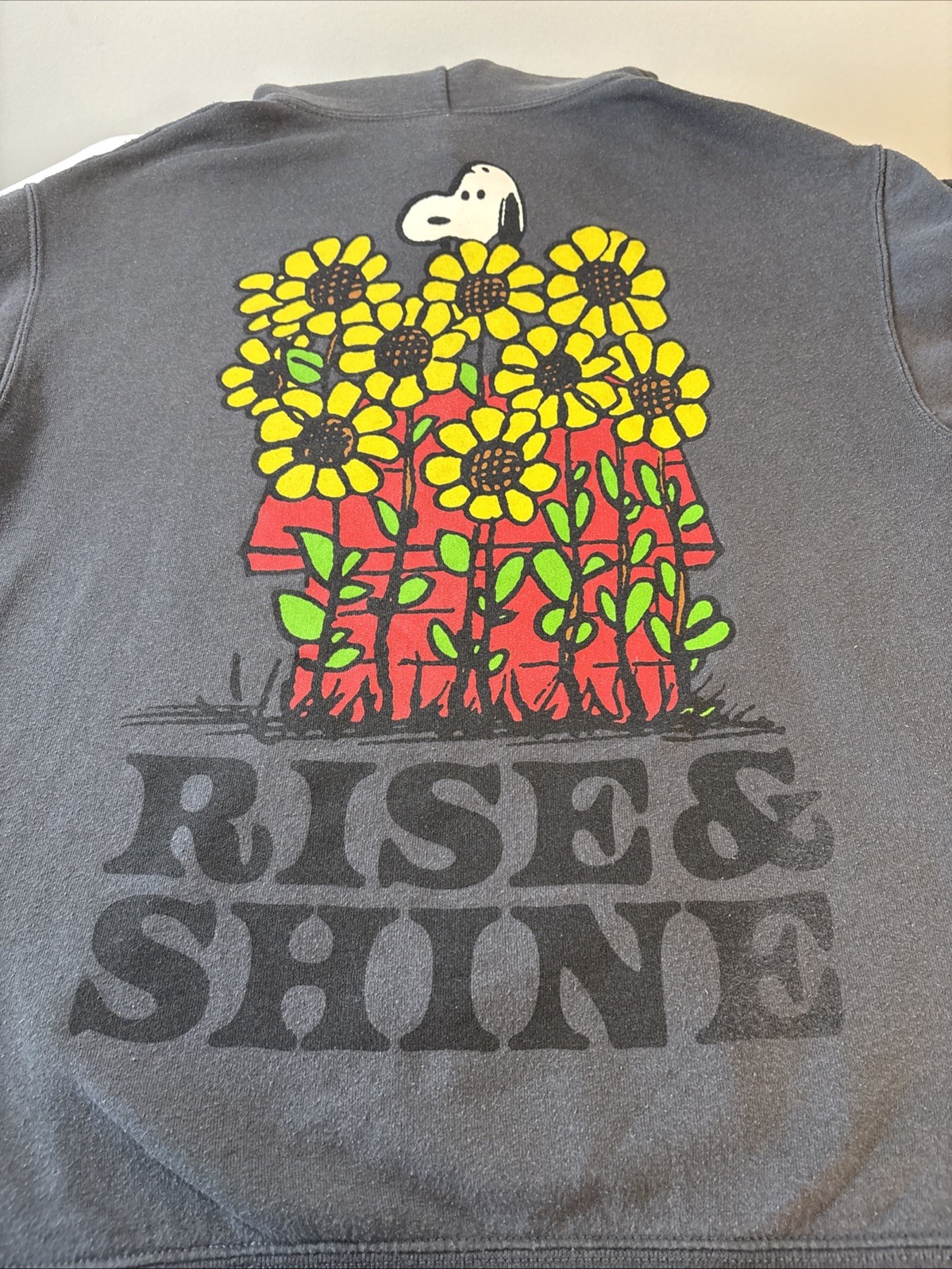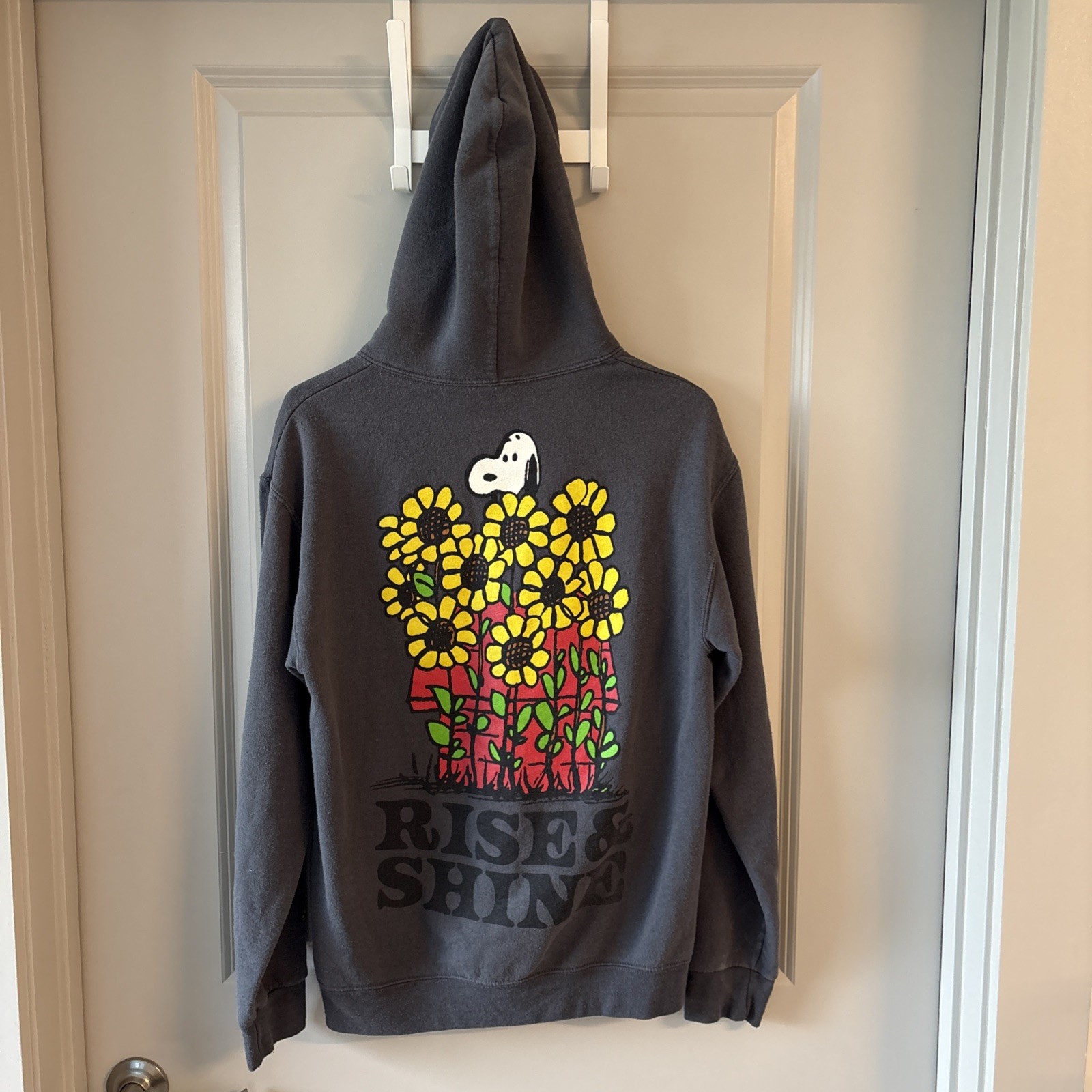 Peanuts Snoopy Hoodie Small Graphic Print Woodstock Rise and Shine Cartoon Style