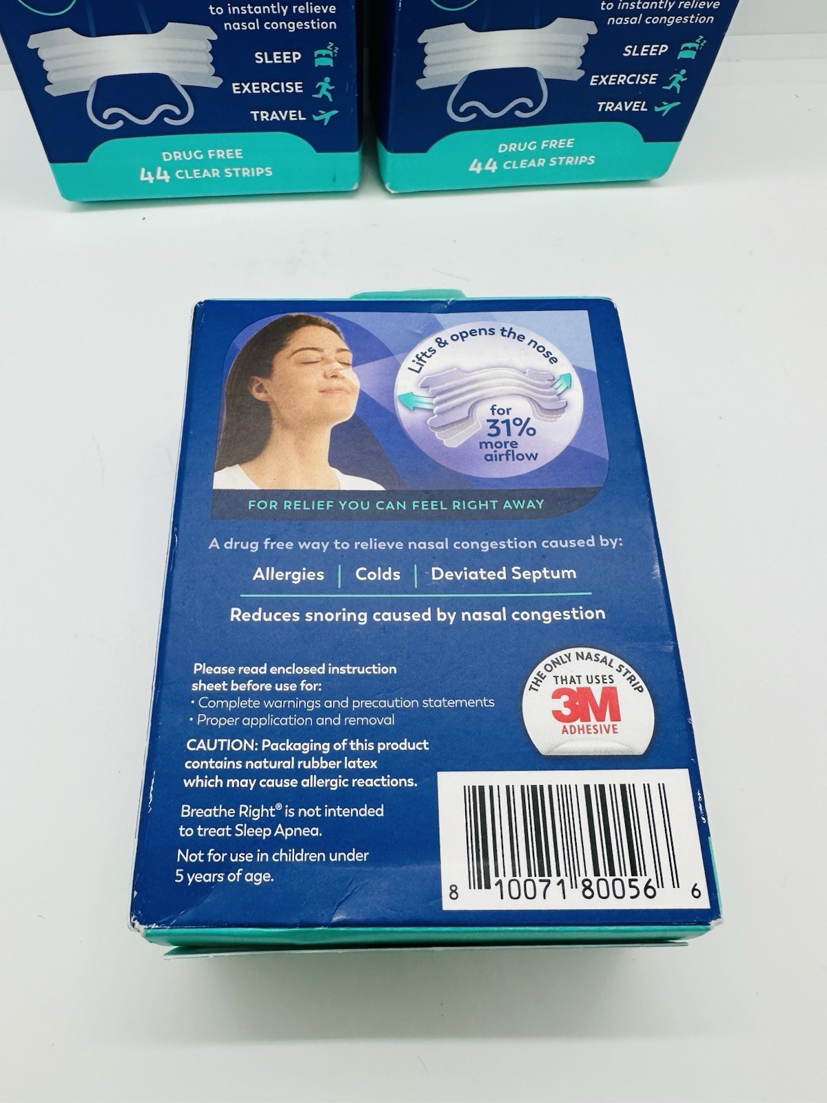 как выглядит BREATHE RIGHT EXTRA STRENGTH CLEAR 5 packs of 44 NASAL STRIPS. EXP-07/31/2029 фото