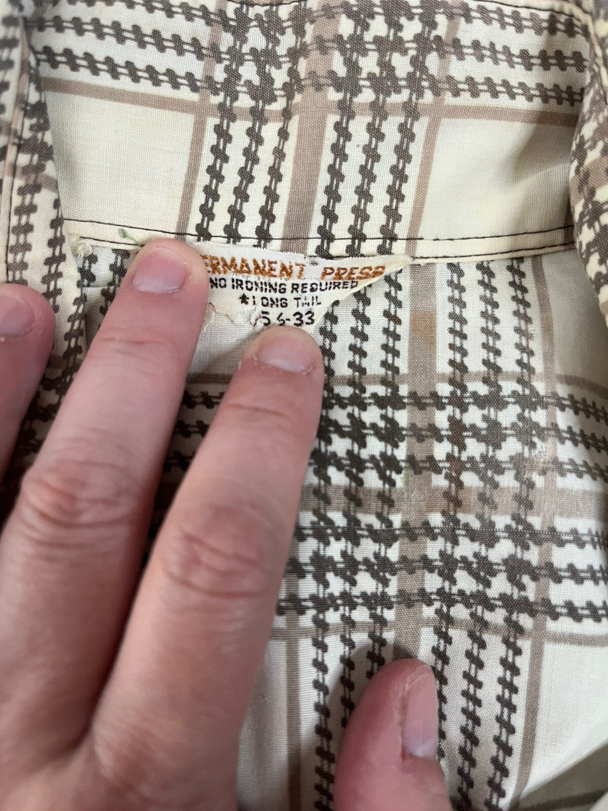 Vtg 1960's Men's Permanent Press Pearl Snap Long Tails Western Shirt Lg