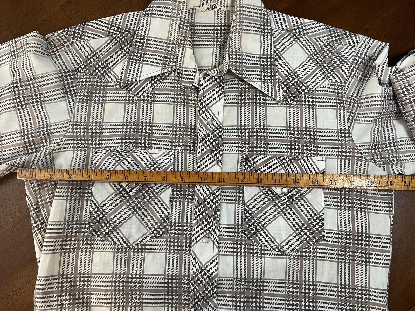 как выглядит Vtg 1960s Mens Permanent Press Pearl Snap Long Tails Western Shirt Lg фото