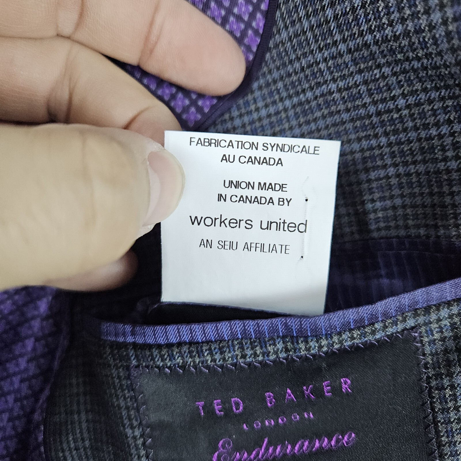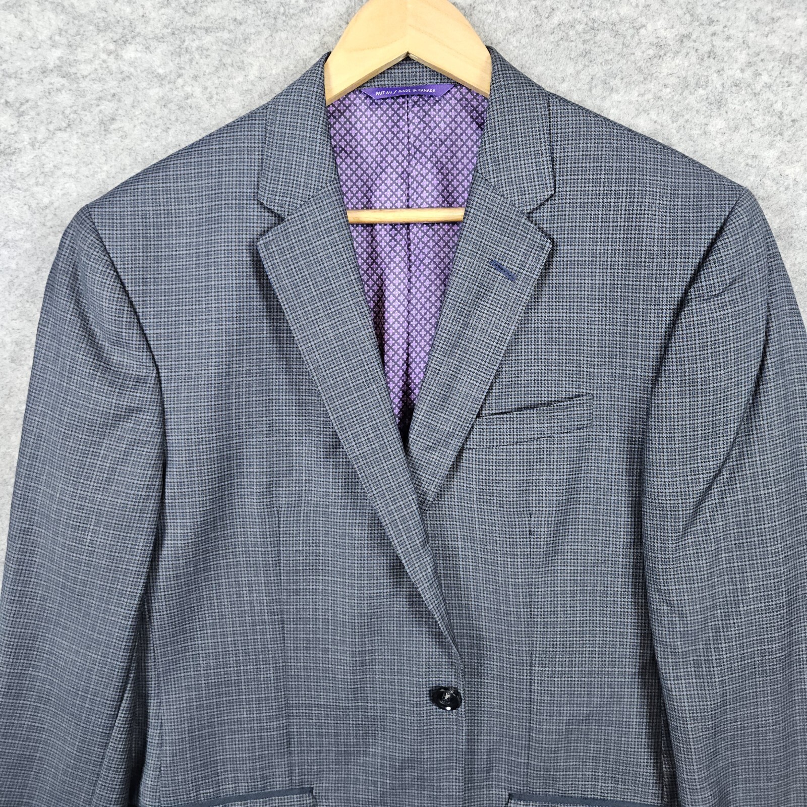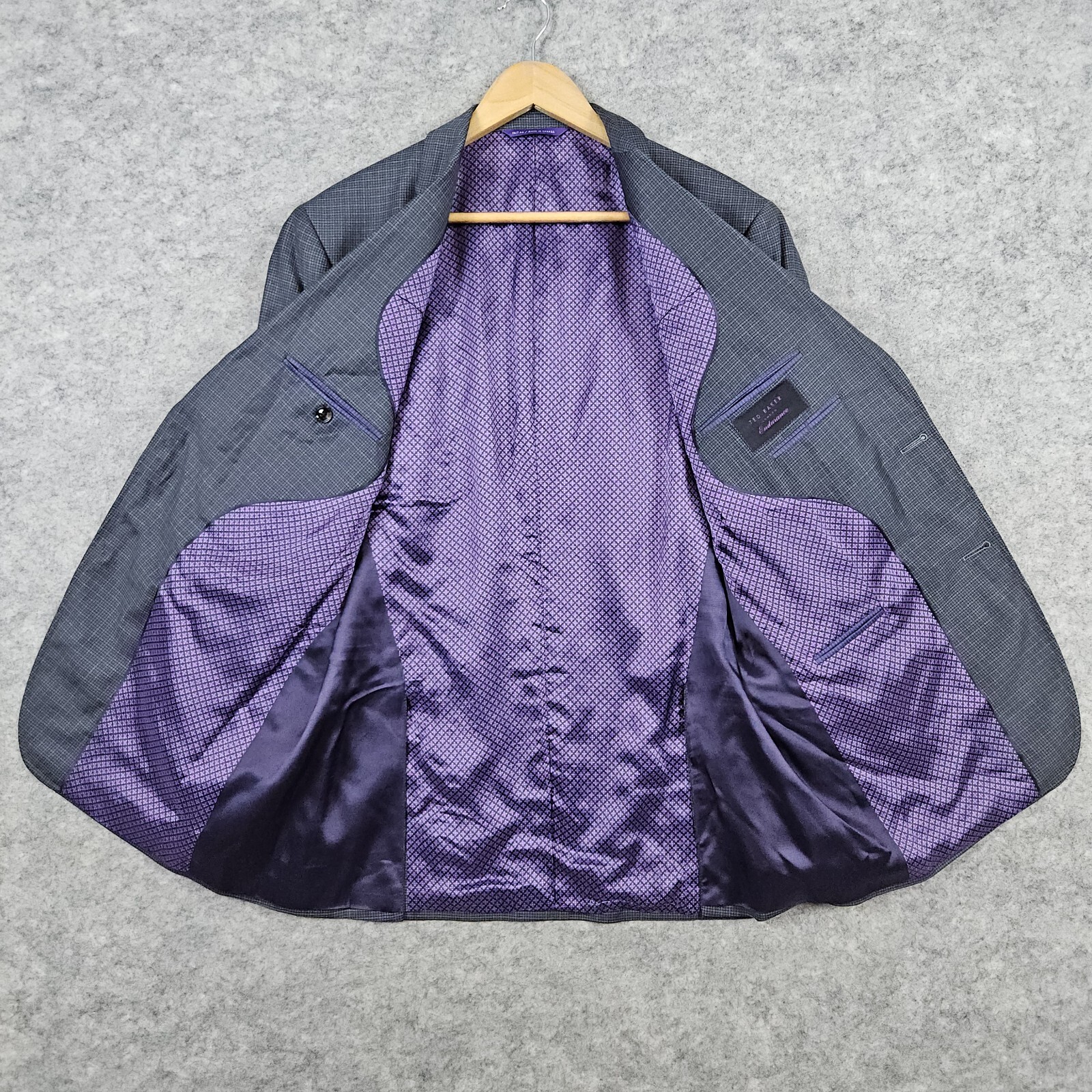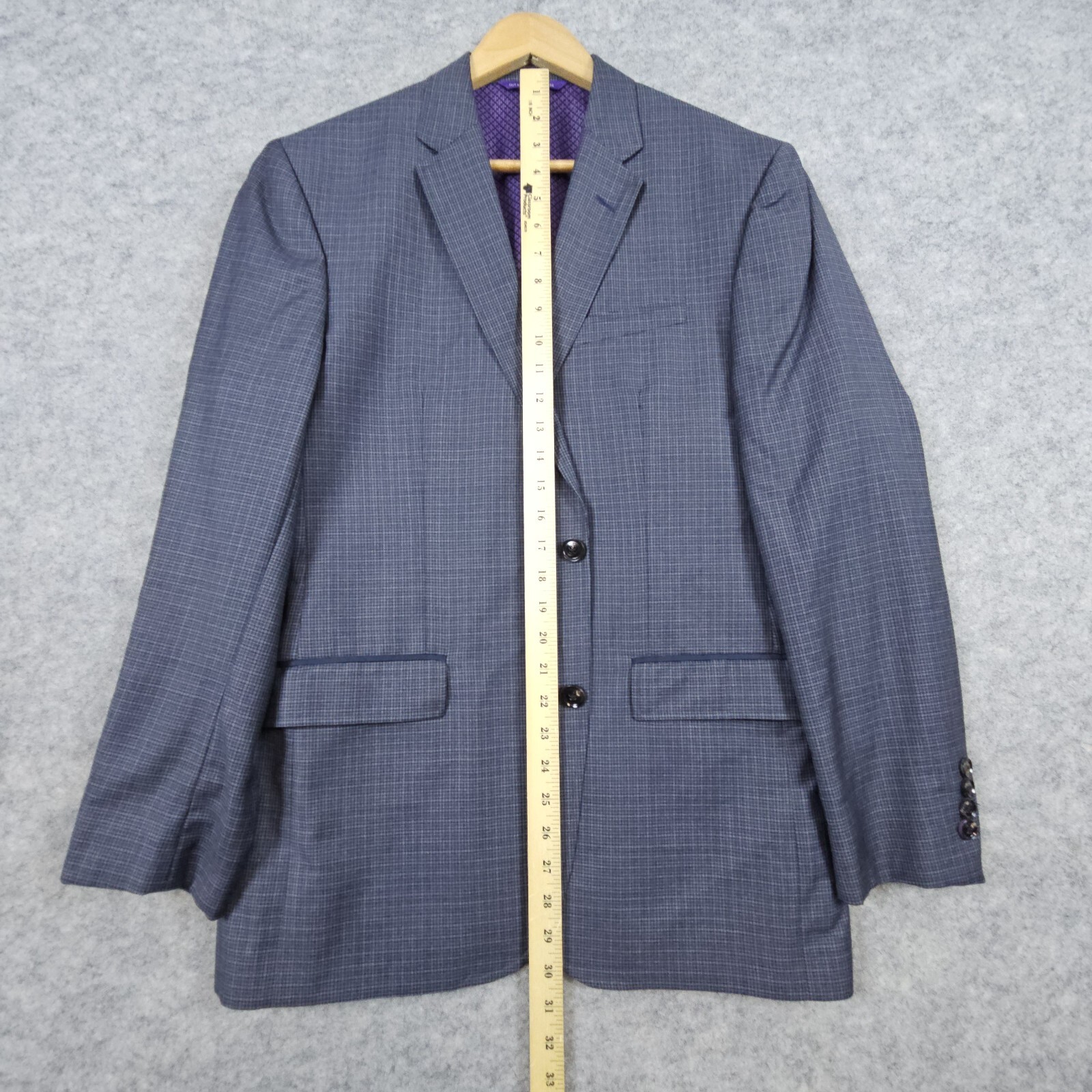 как выглядит Ted Baker London Endurance Blazer Size 42R Blue Gray Checks 100 Wool FLAWS фото