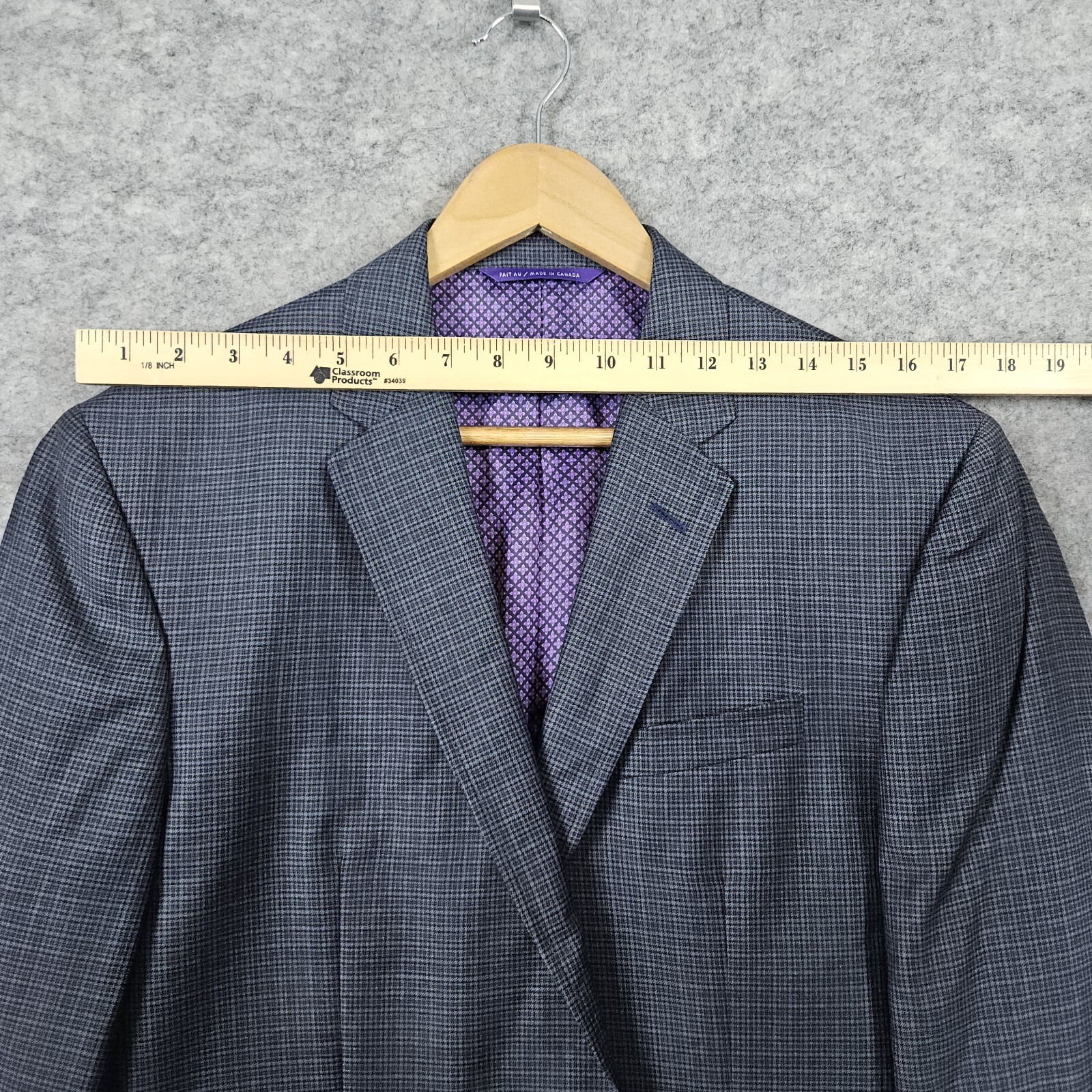 Ted Baker London Endurance Blazer Size 42R Blue Gray Checks 100 Wool FLAWS