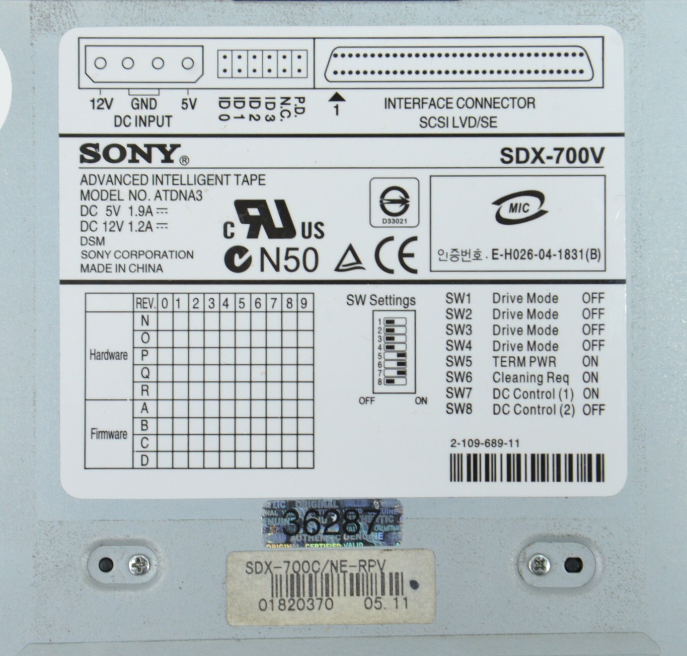 SONY ATDNA3 Advanced Intelligent Internal Tape Drive AIT-3 SDX-700V