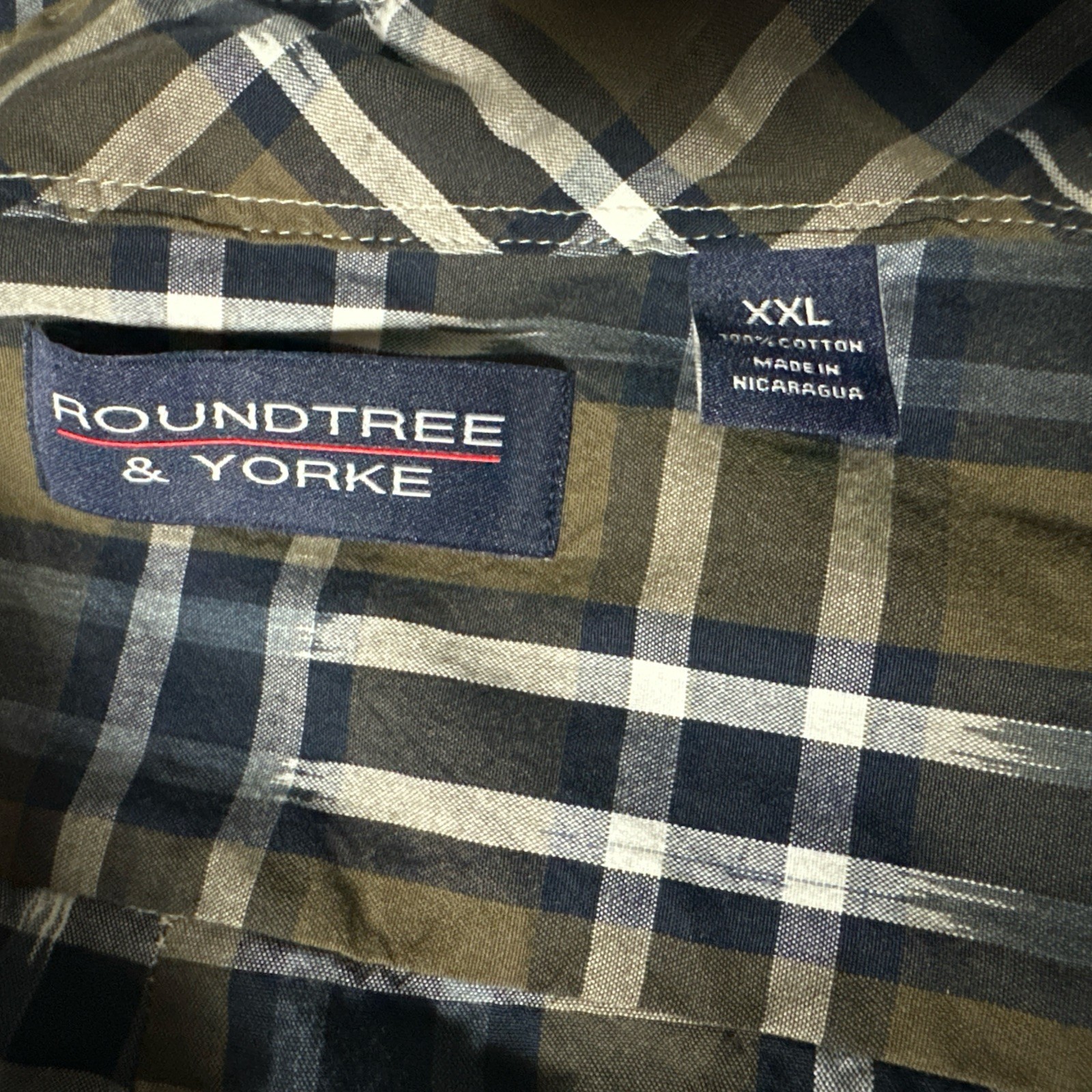 как выглядит Roundtree Yorke Men Shirt XXL / 2XL Cotton Button Short Sleeve Brown Blue фото