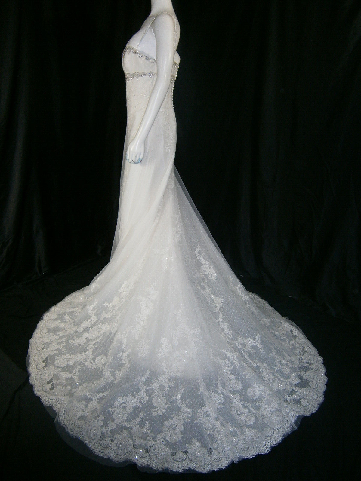 Blue by Enzoani Accra Wedding Dress 14 Empire Fit Flare Netting Lace Bling