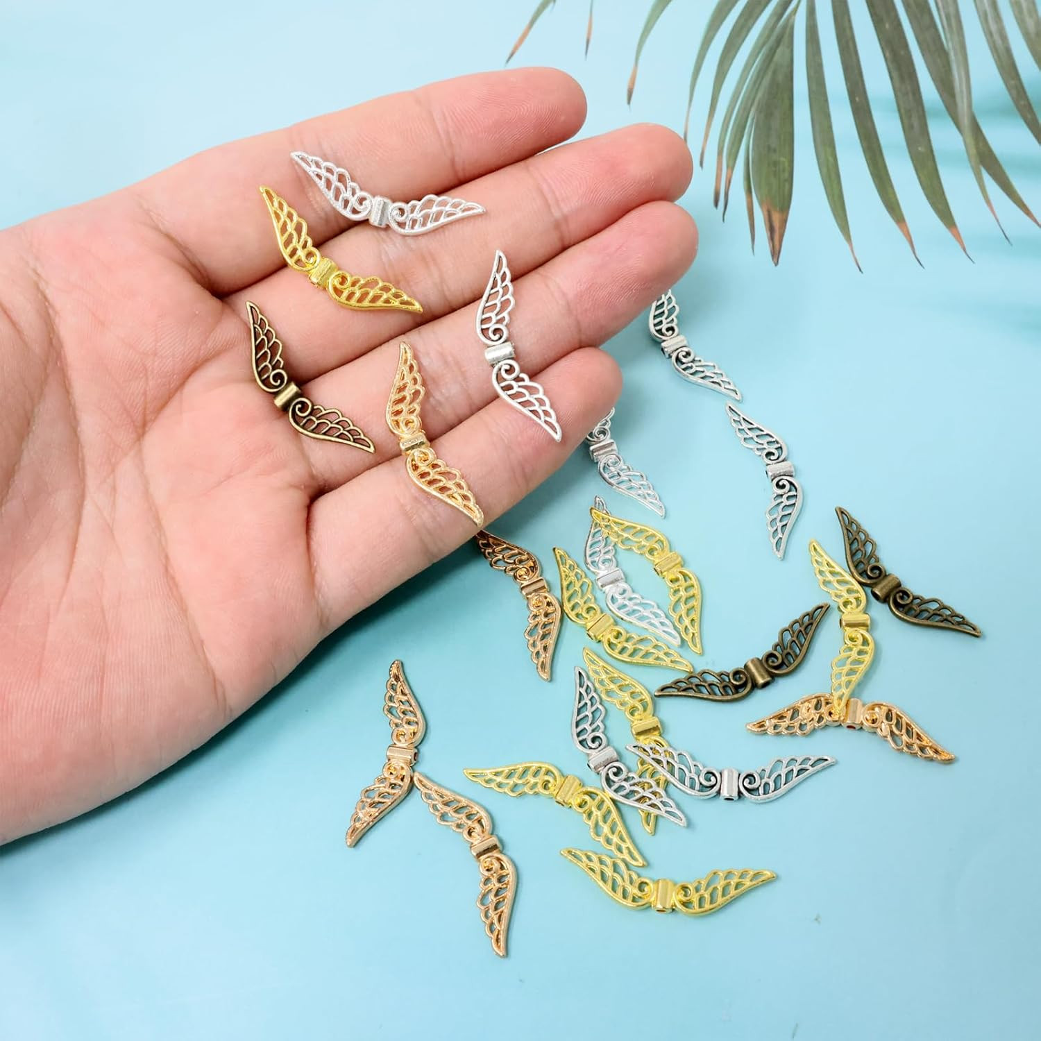 100PCS Alloy Angel Wing Charms Bead Hollow Fairy Wing Charm Spacer Beads for Bra
