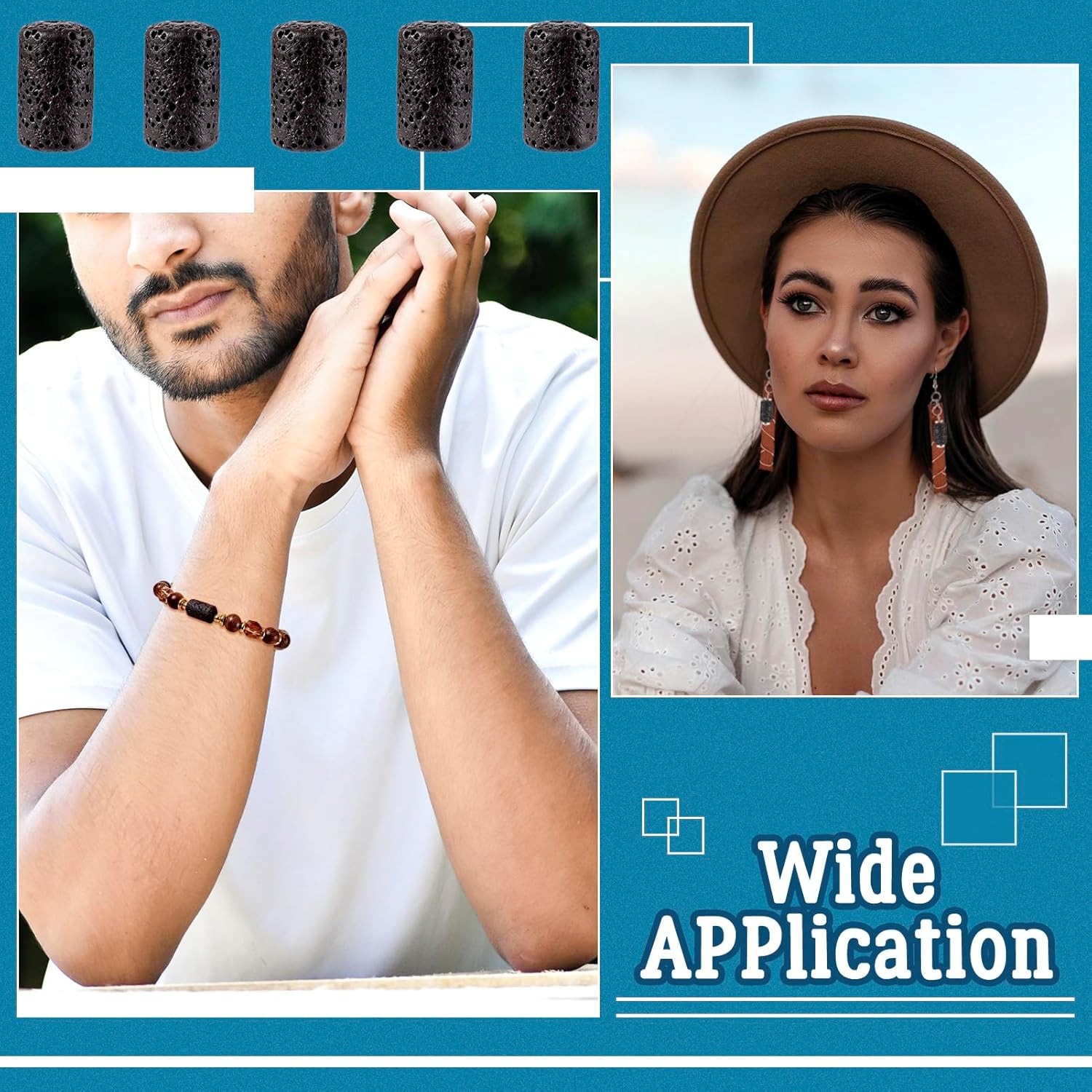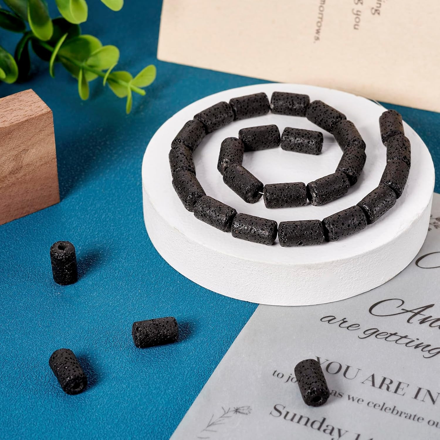25Pcs Natural Black Lava Stone Beads Column Tube Volcanic Rock Gemstone Loose Be