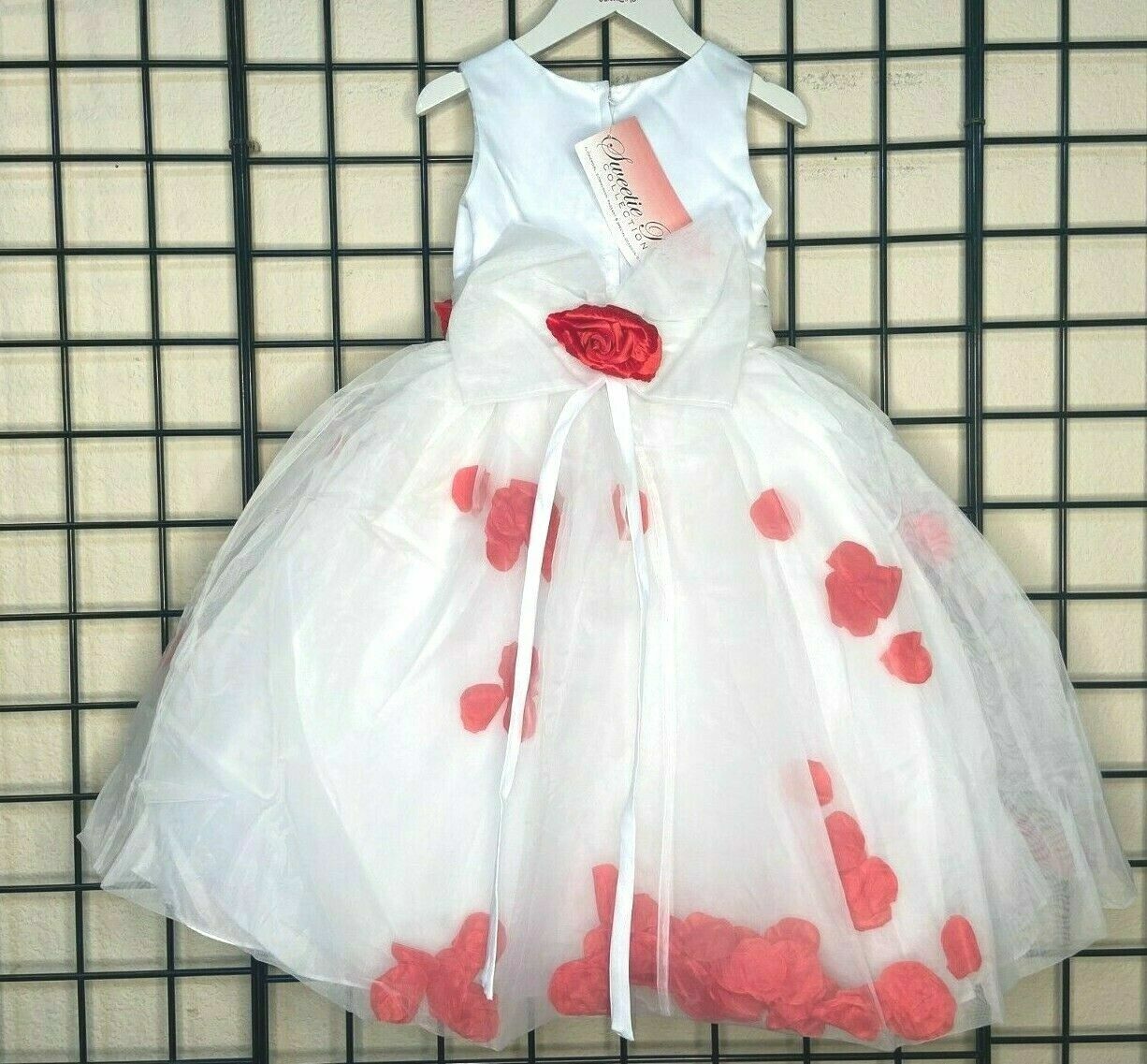 Sweetie Pie White Dress 7 Red Petals Bow Pageant Party Formal Gown Wedding Child