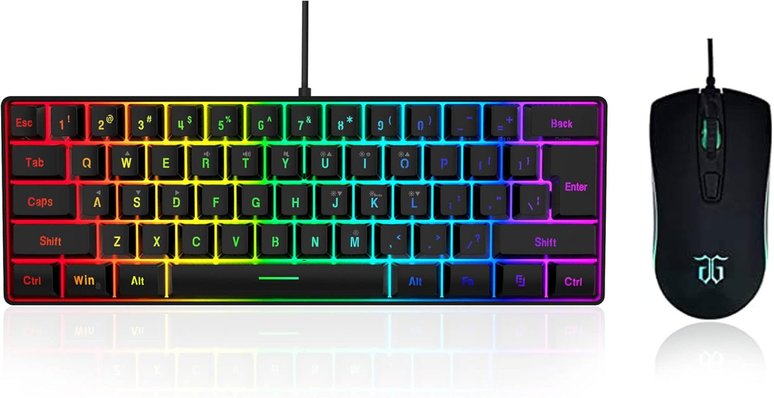60 Gaming Keyboard and Mouse Combo, Small Keyboard and Mouse Set, Mini Gaming K