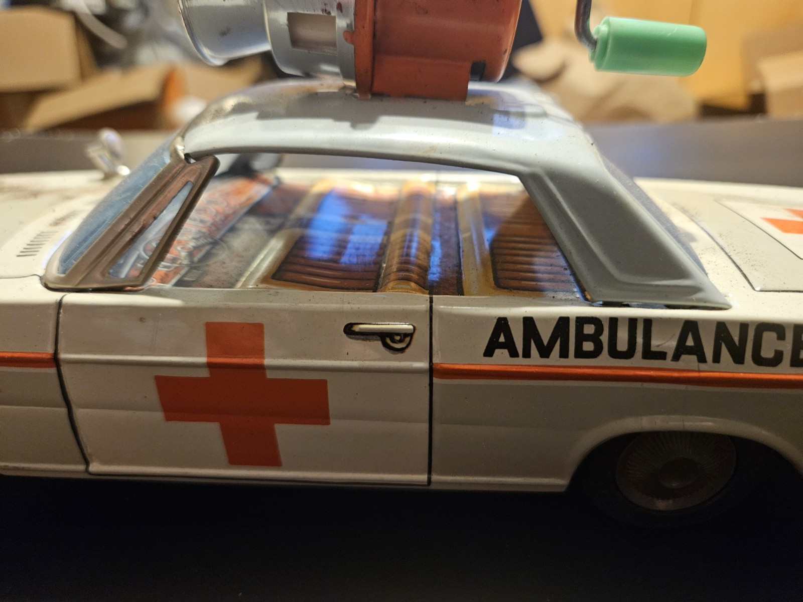 Friction Motor Ambulance Car With Crank Siren Ford Galaxy Masudaya Trade Mark TM